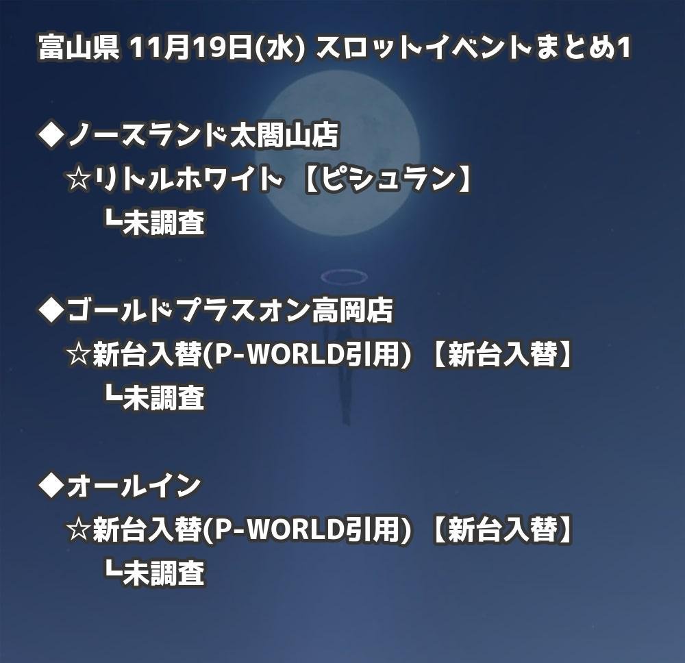 【富山県】11月19日(水) パチンコホールイベント取材まとめ記事です。