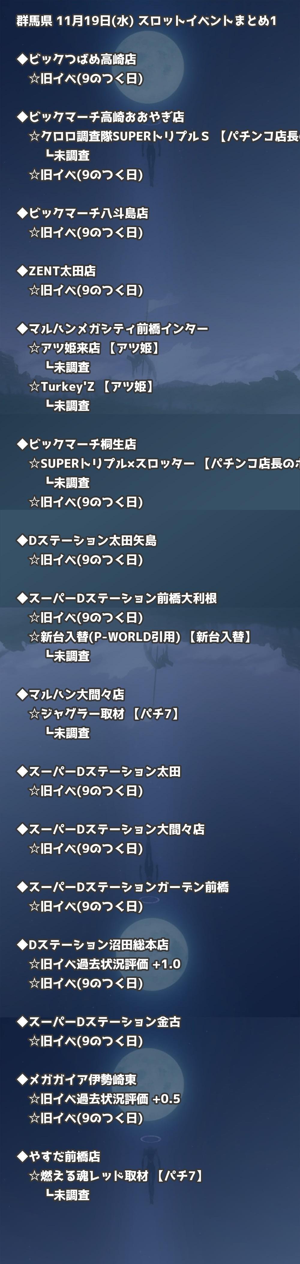 【群馬県】11月19日(水) パチンコホールイベント取材まとめ記事です。