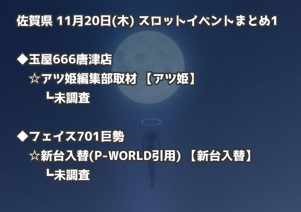 【佐賀県】11月20日(木) パチンコホールイベント取材まとめ記事です。