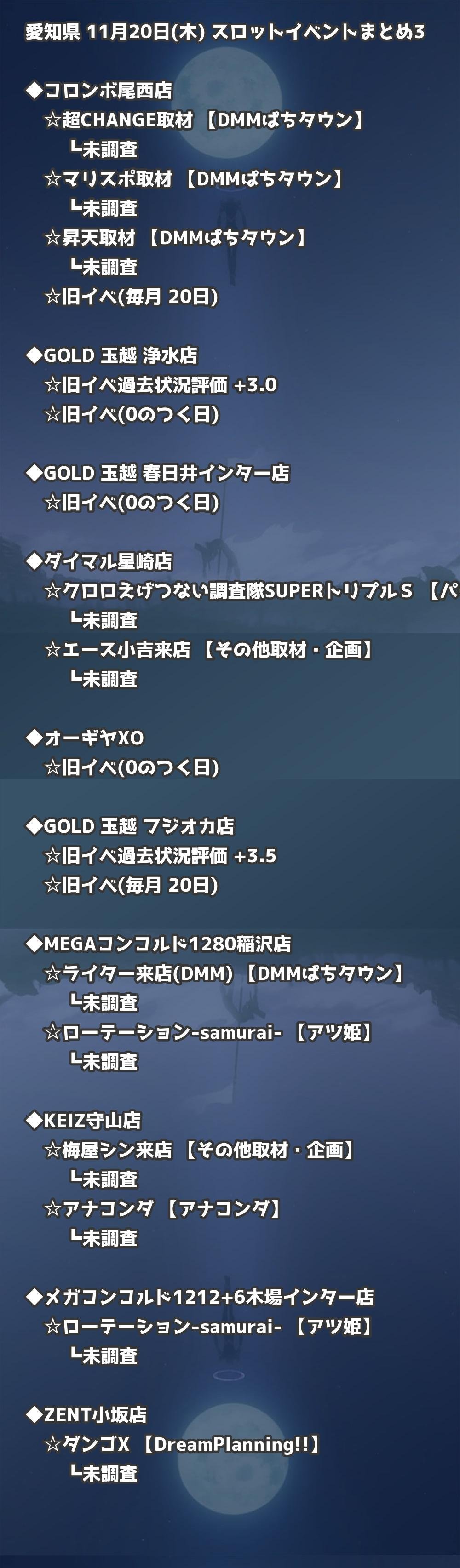 【愛知県】11月20日(木) パチンコホールイベント取材まとめ記事です。