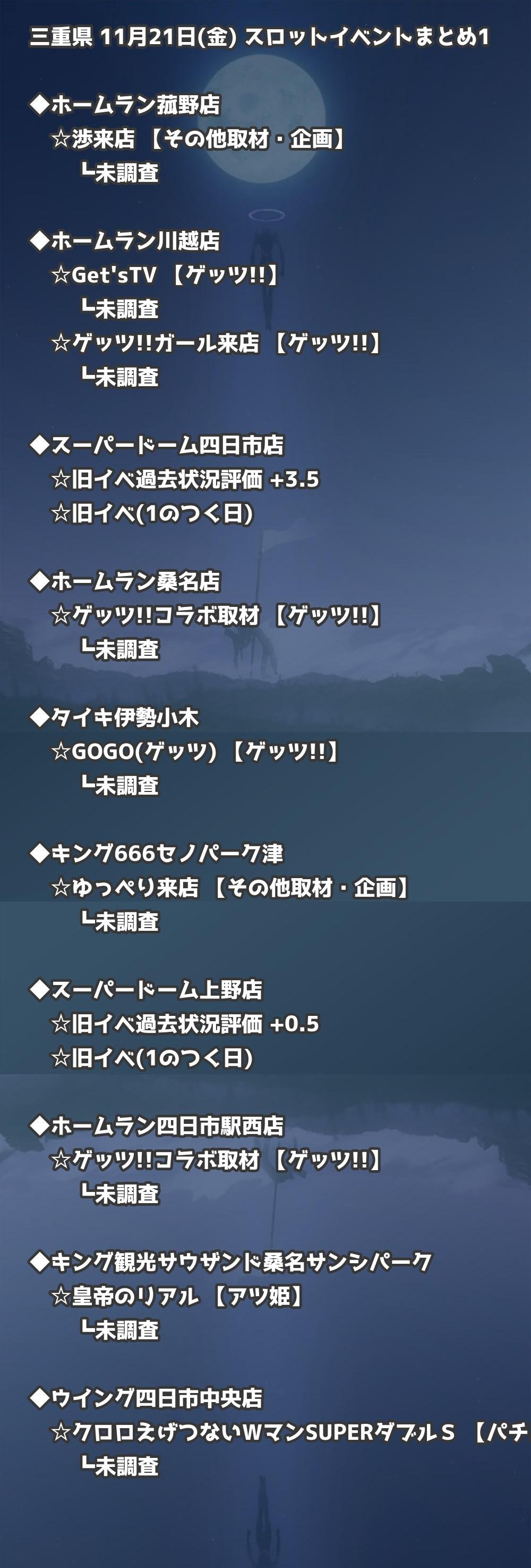 📊 三重県 11月21日(金) 勝てるパチンコ・スロット取材店舗一覧|おすすめ順