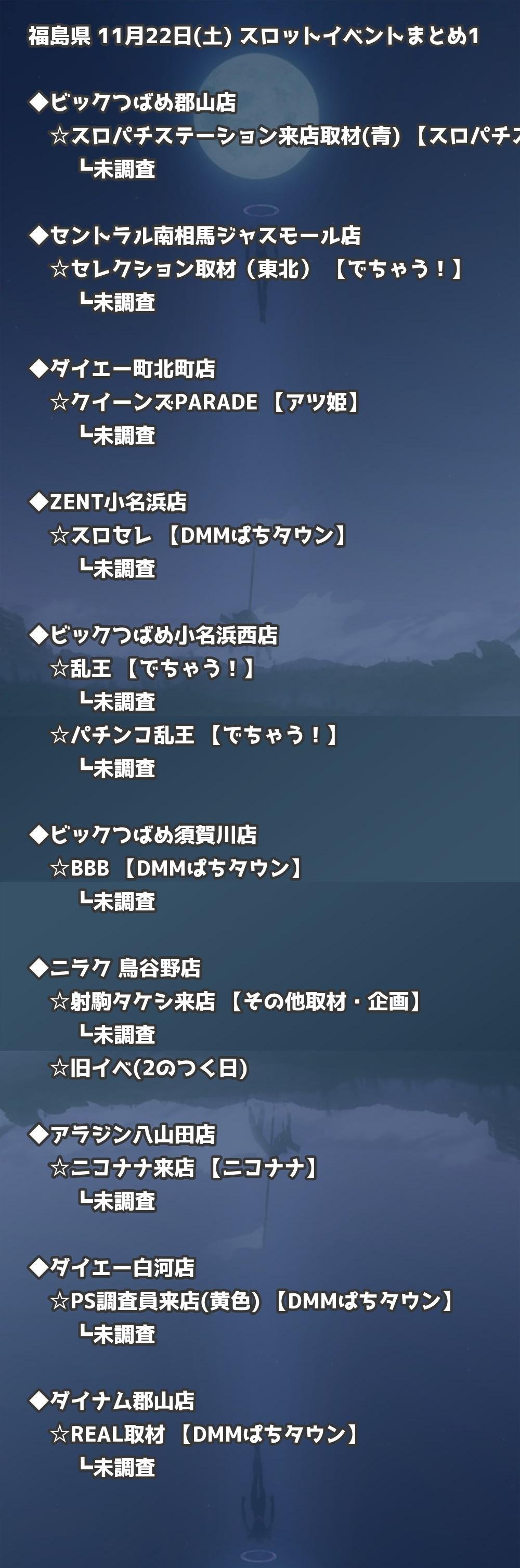 📊 福島県 11月22日(土) 勝てるパチンコ・スロット取材店舗一覧|おすすめ順
