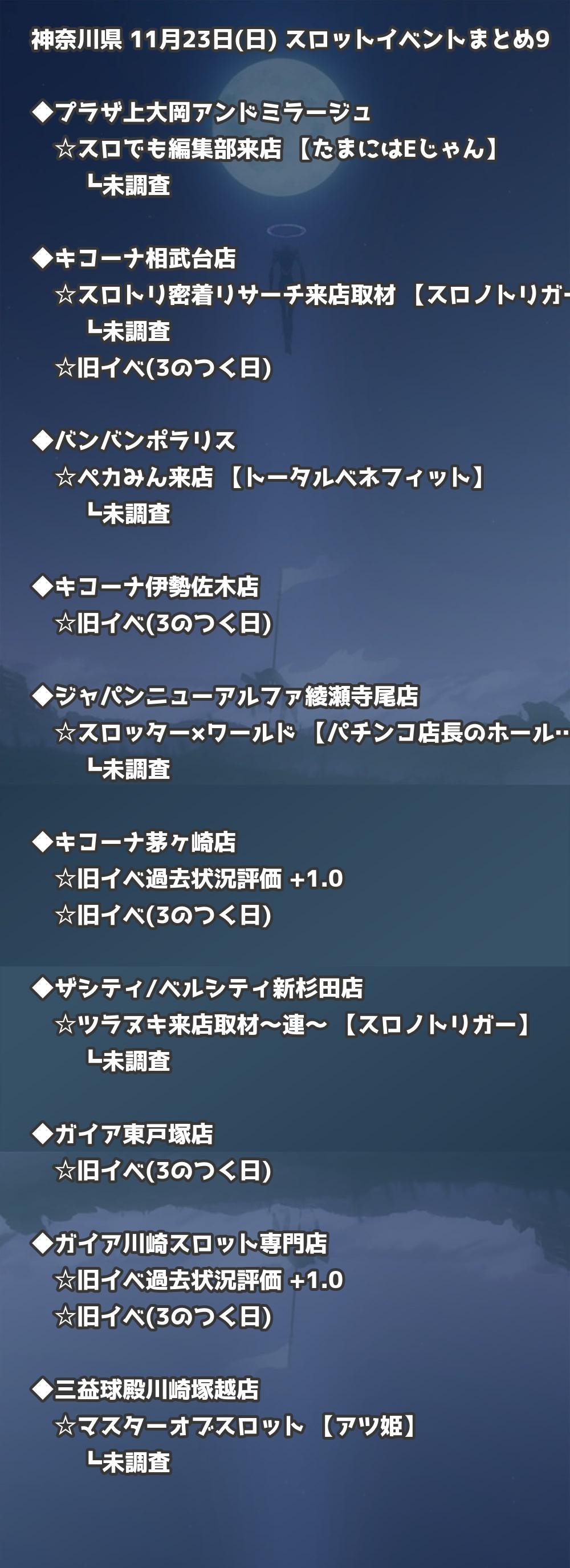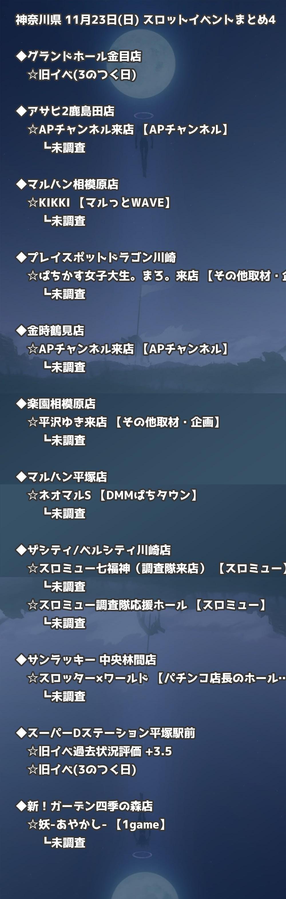 📊 神奈川県 11月23日(日) 勝てるパチンコ・スロット取材店舗一覧|おすすめ順
