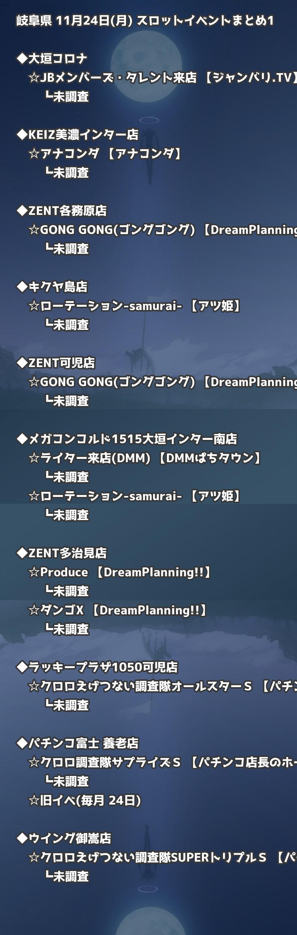 岐阜 11月24日(月) パチンコ取材|岐阜・大垣・多治見情報まとめ