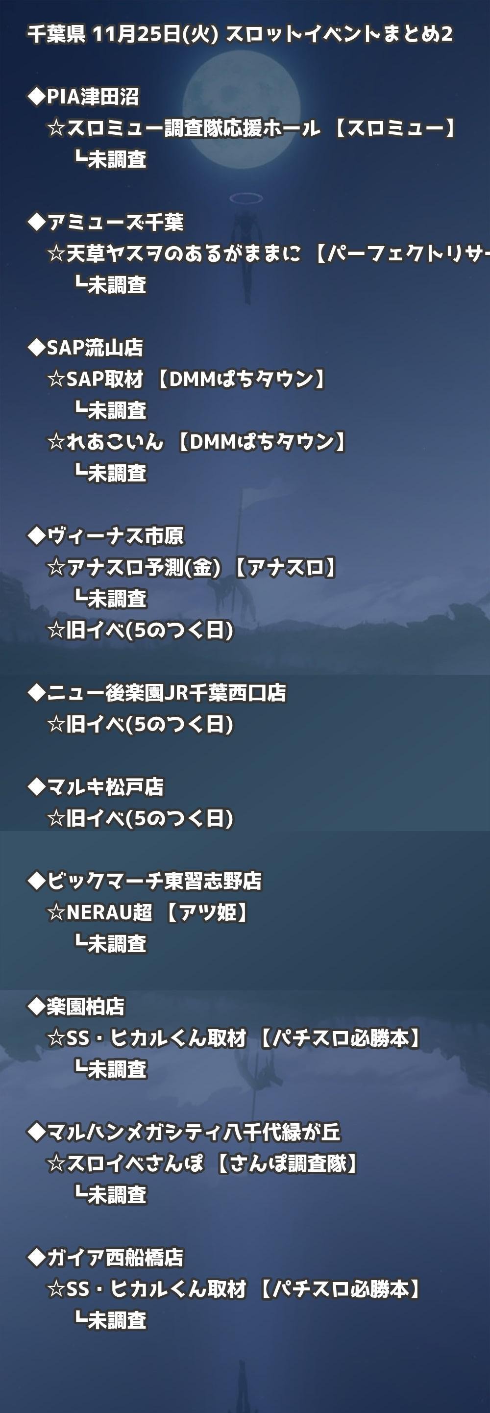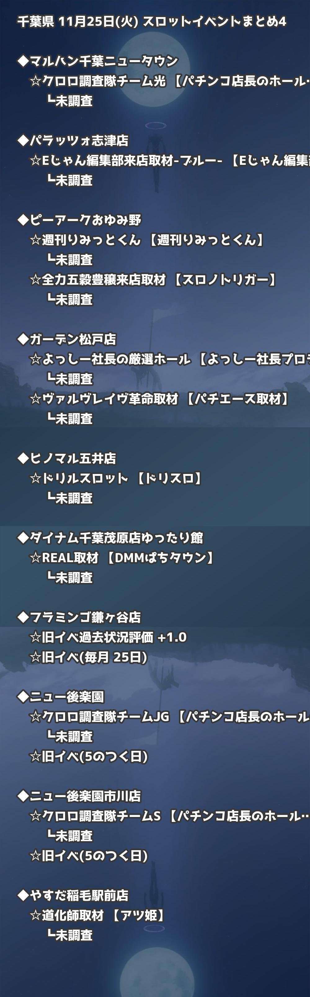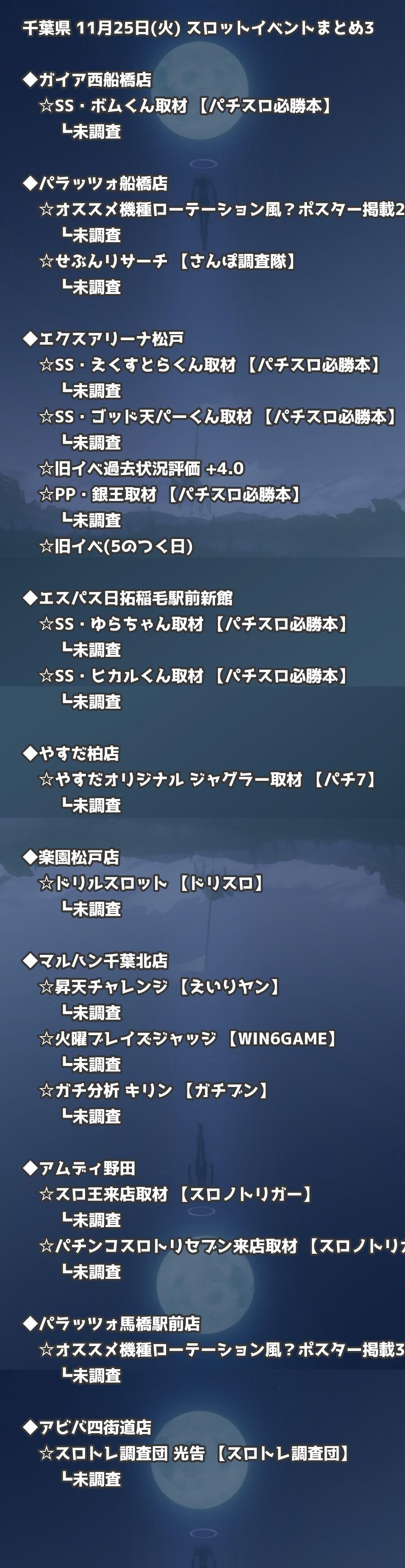 【千葉県】11月25日(火) パチンコホールイベント取材まとめ記事です。