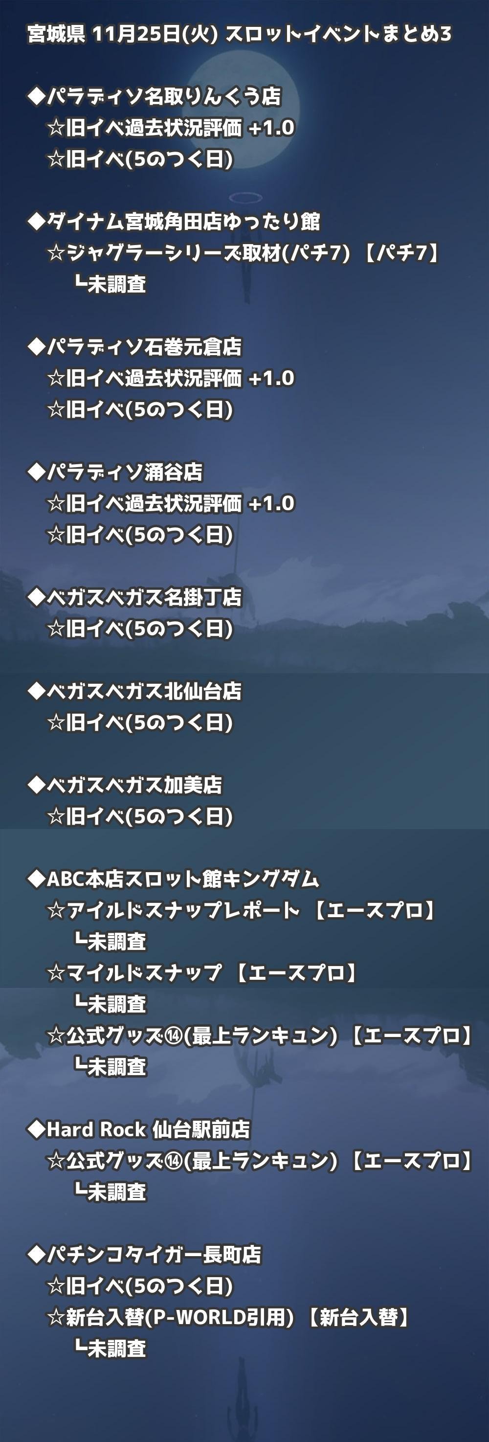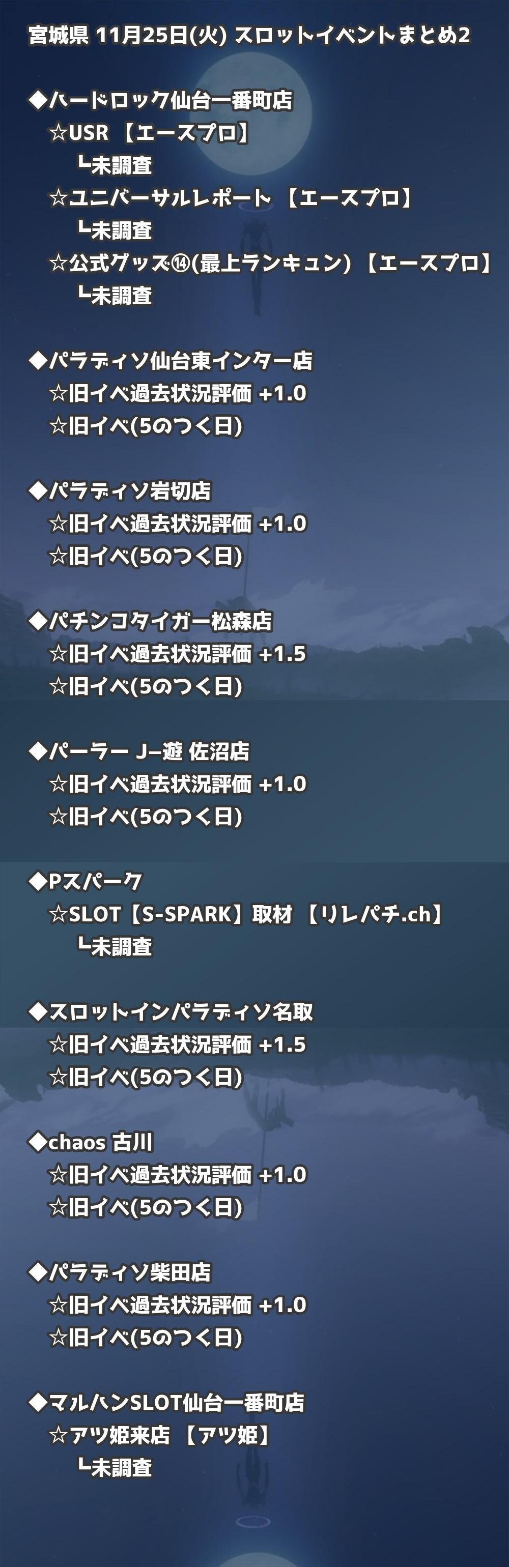 【宮城県】11月25日(火) パチンコホールイベント取材まとめ記事です。