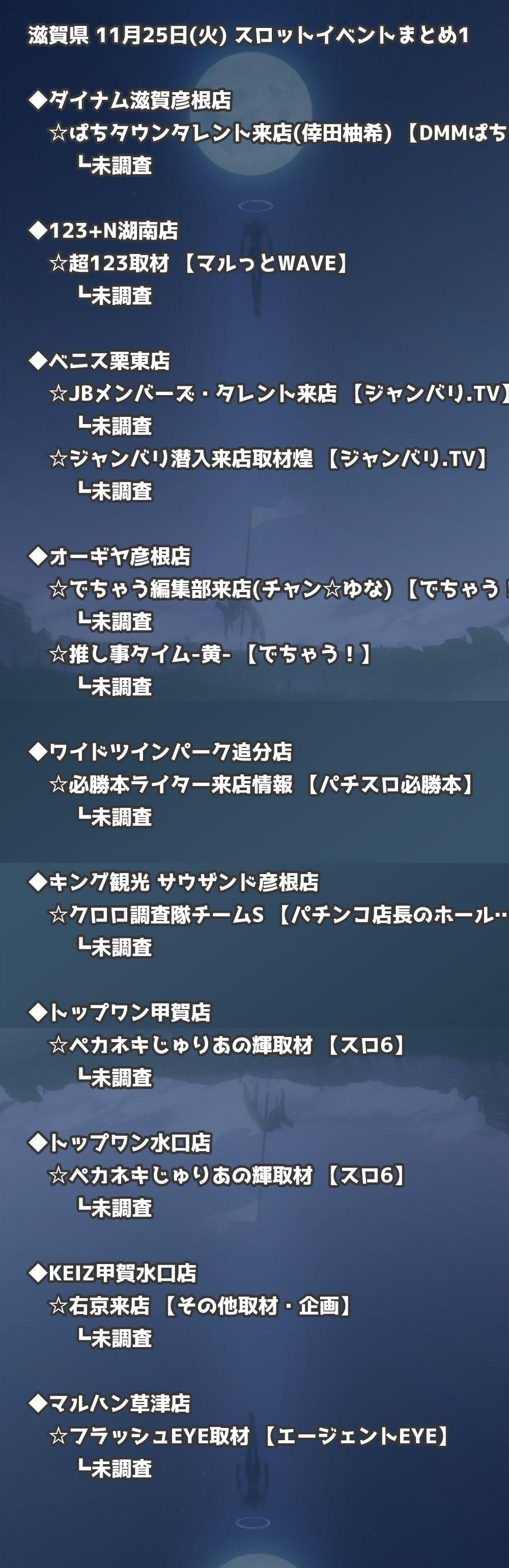 📊 滋賀県 11月25日(火) 勝てるパチンコ・スロット取材店舗一覧|おすすめ順