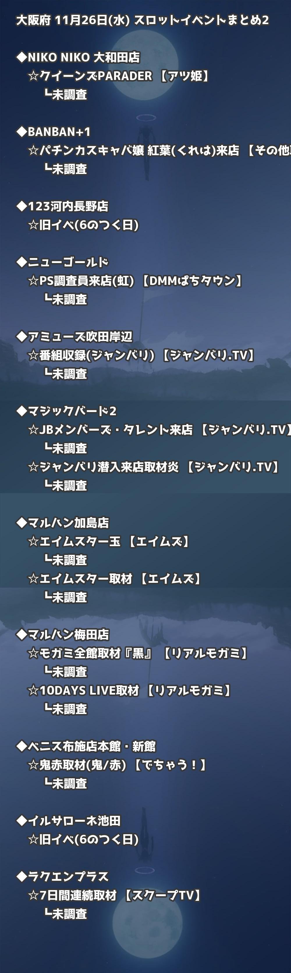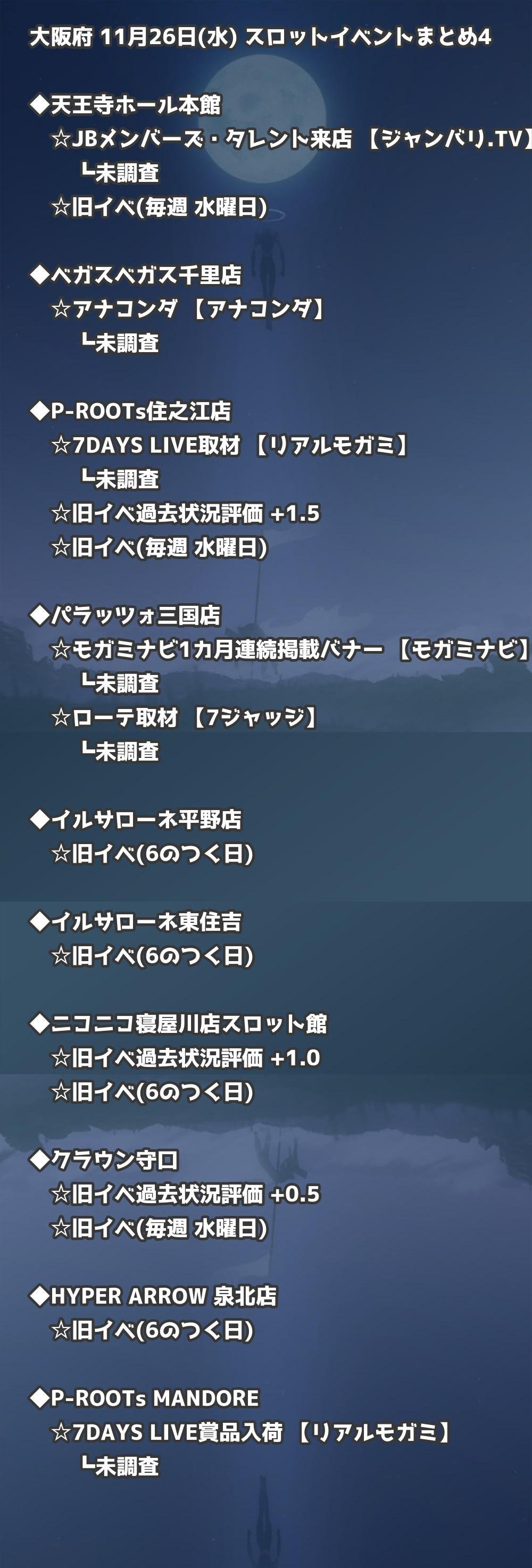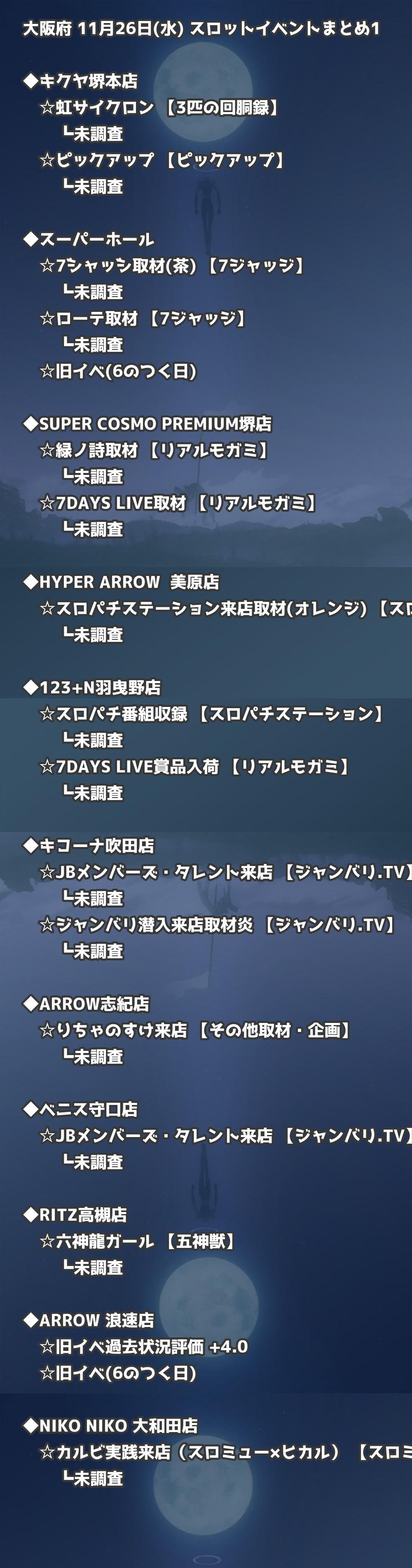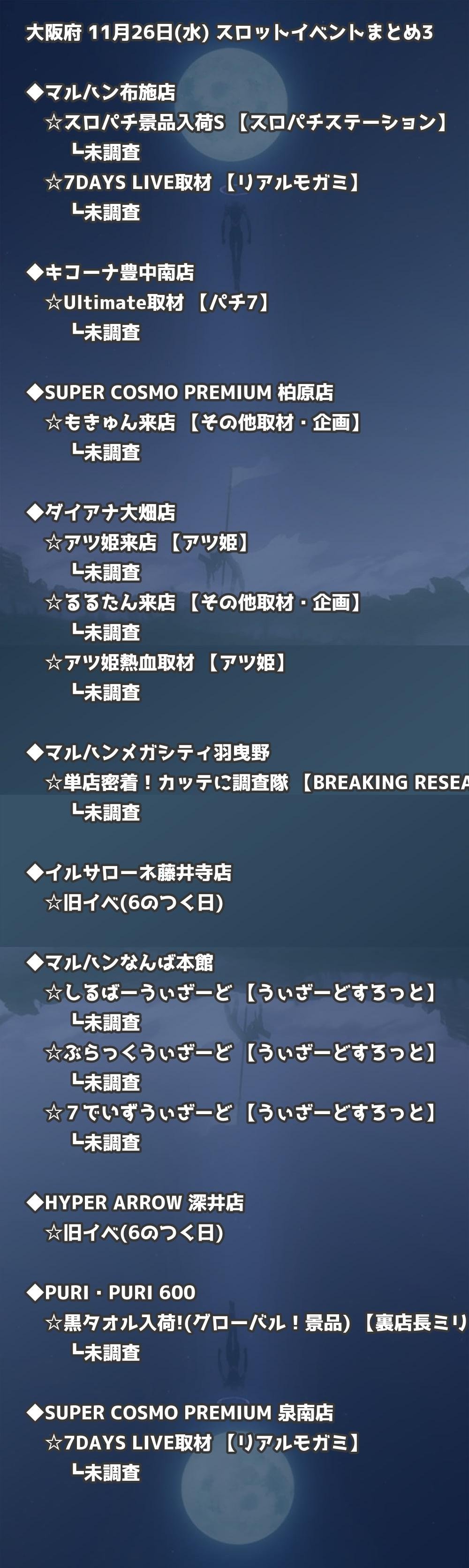 【大阪府】11月26日(水) パチンコホールイベント取材まとめ記事です。