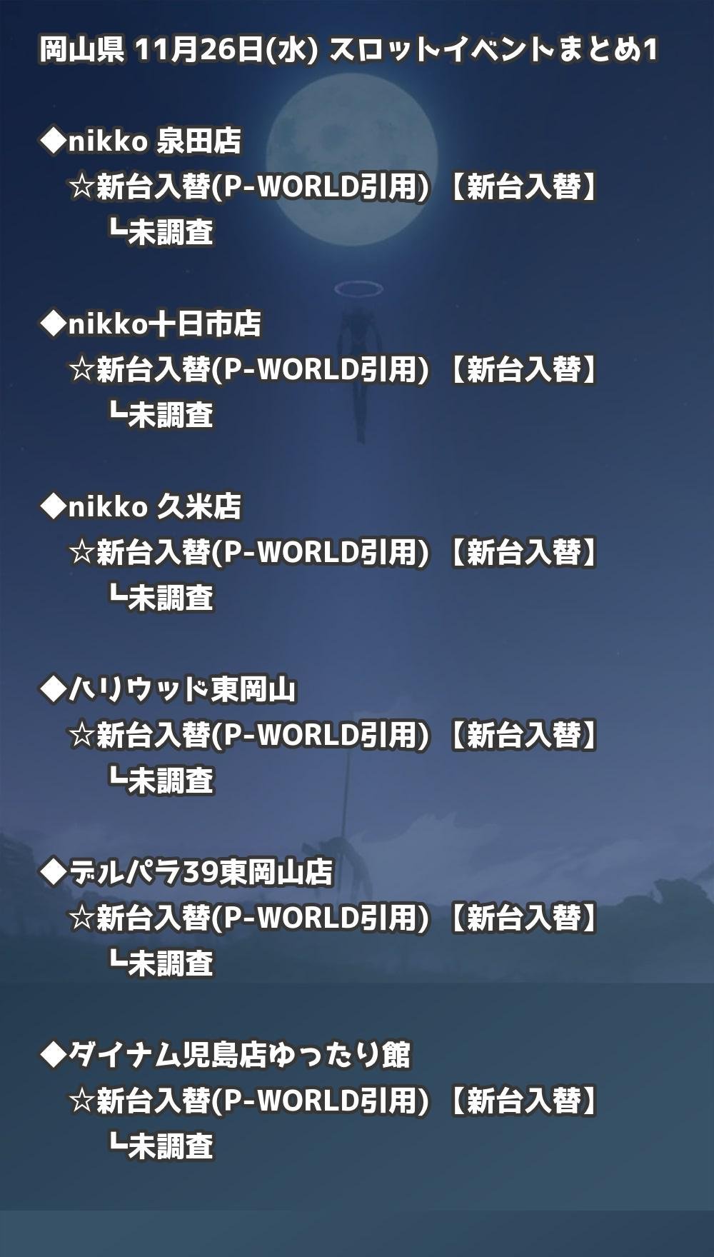 【岡山県】11月26日(水) パチンコホールイベント取材まとめ記事です。
