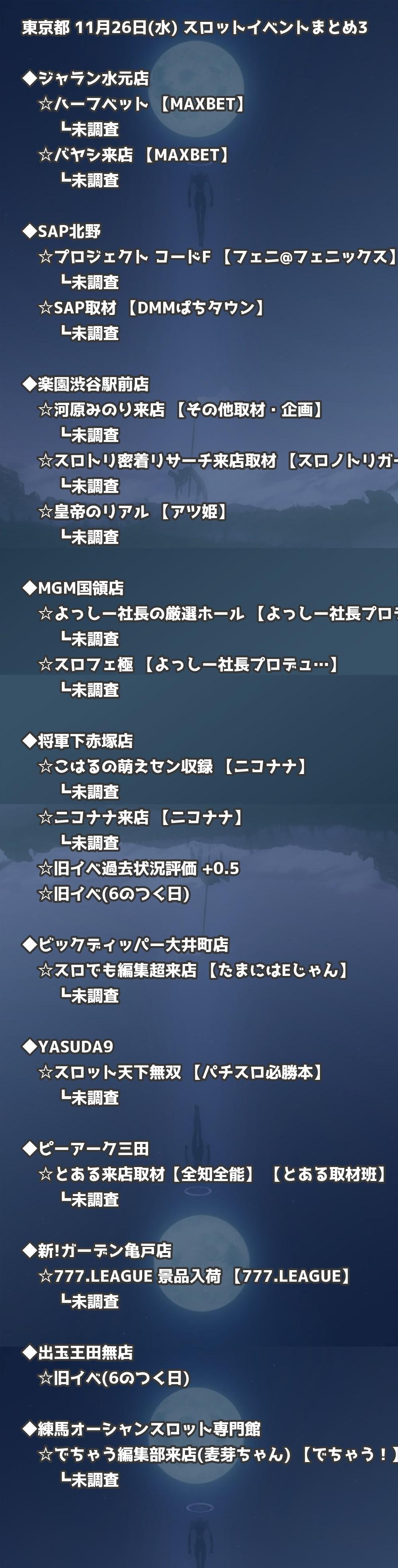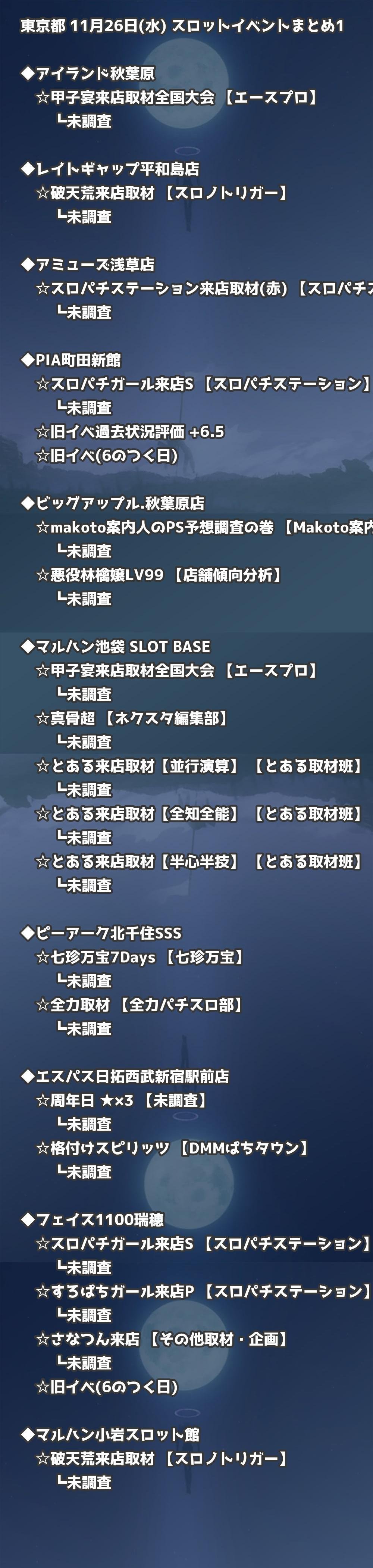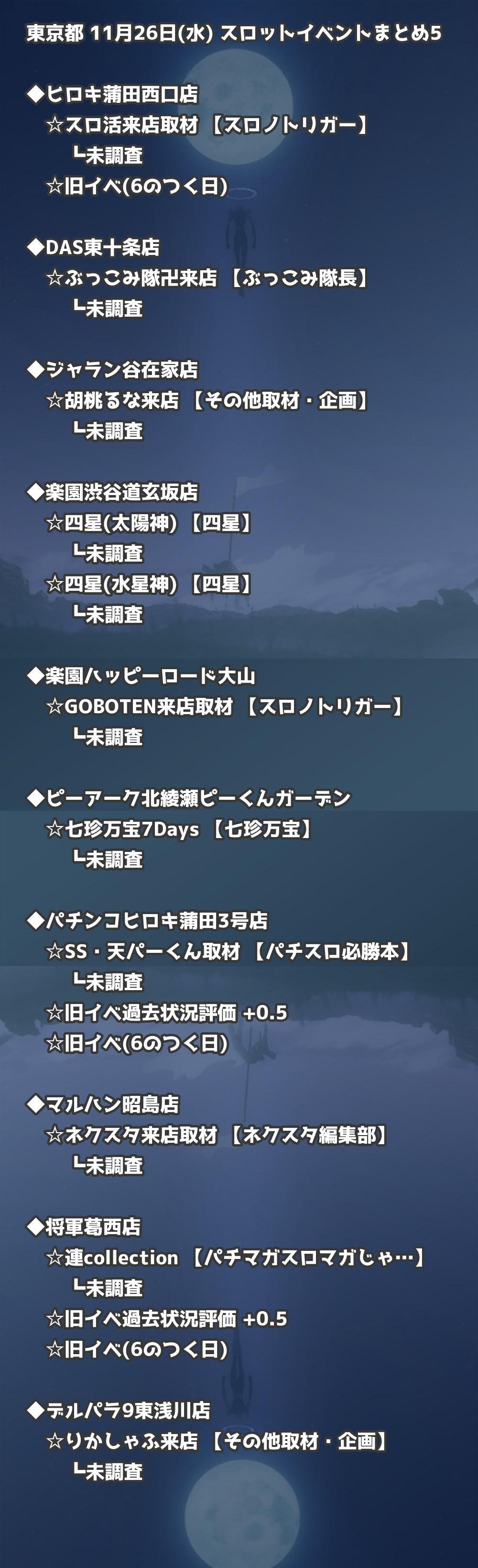 【東京都】11月26日(水) パチンコホールイベント取材まとめ記事です。