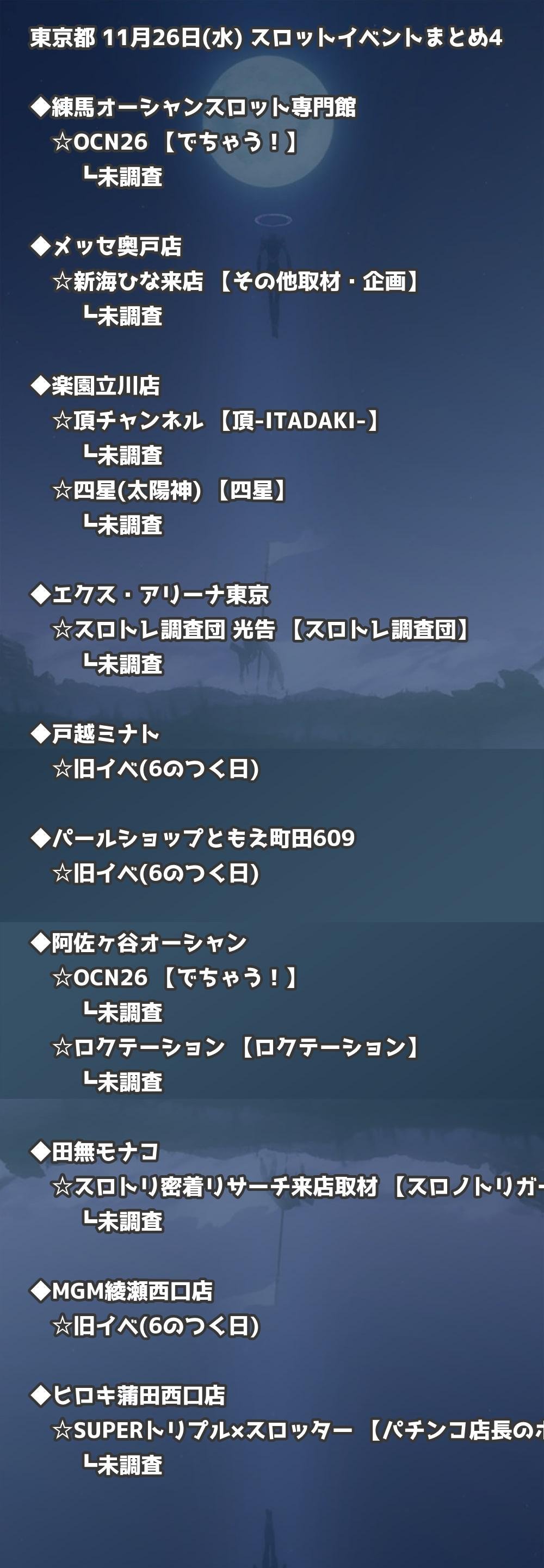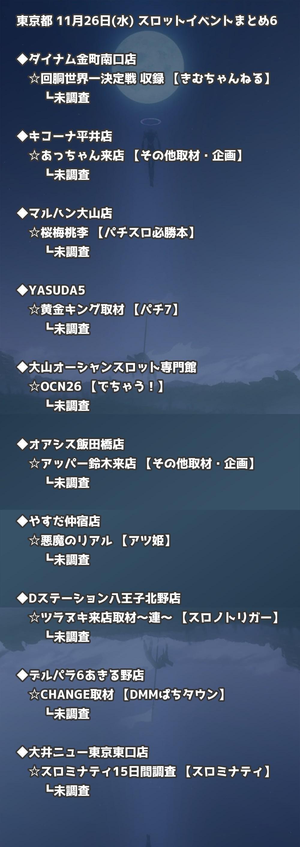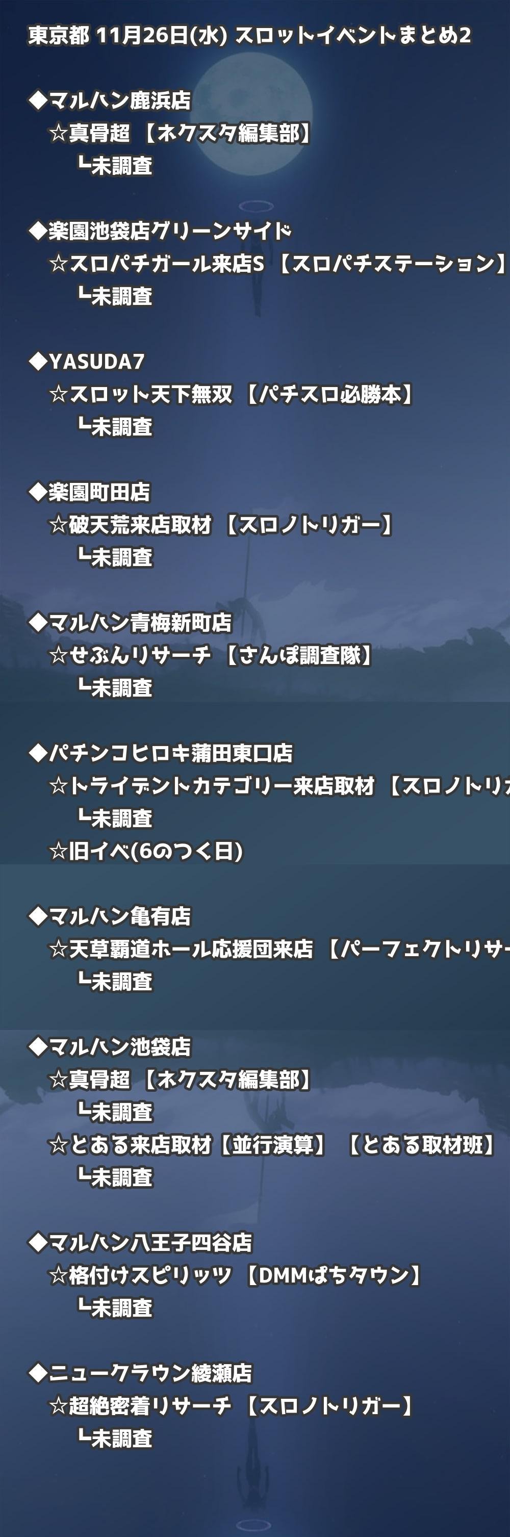 【東京都】11月26日(水) パチンコホールイベント取材まとめ記事です。