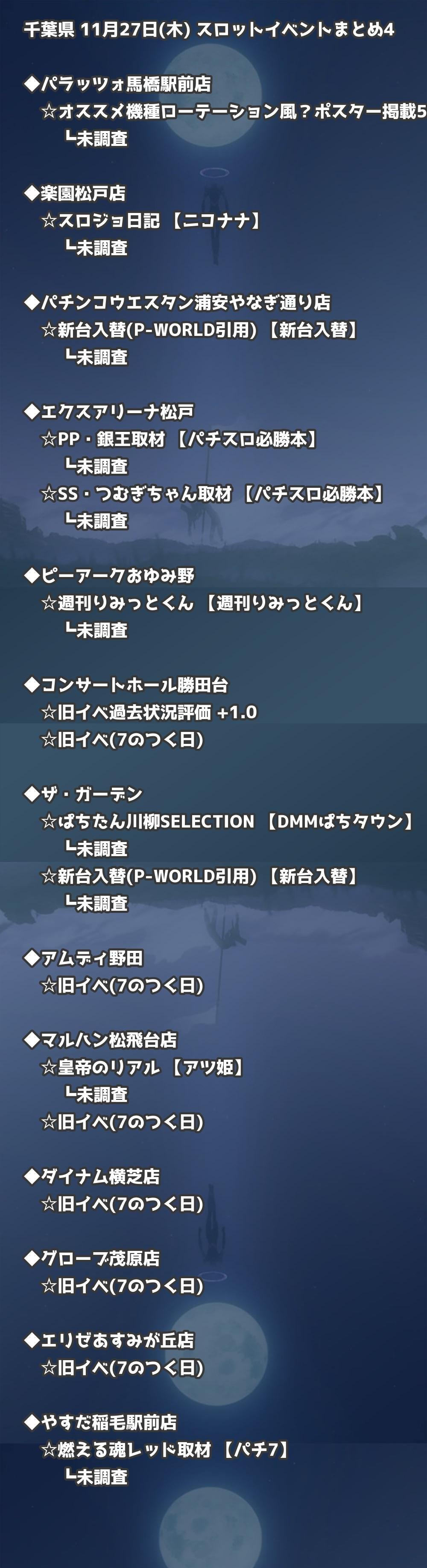 📊 千葉県 11月27日(木) 勝てるパチンコ・スロット取材店舗一覧|おすすめ順
