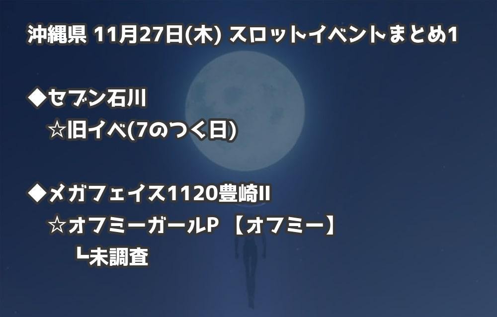【沖縄県】11月27日(木) パチンコホールイベント取材まとめ記事です。