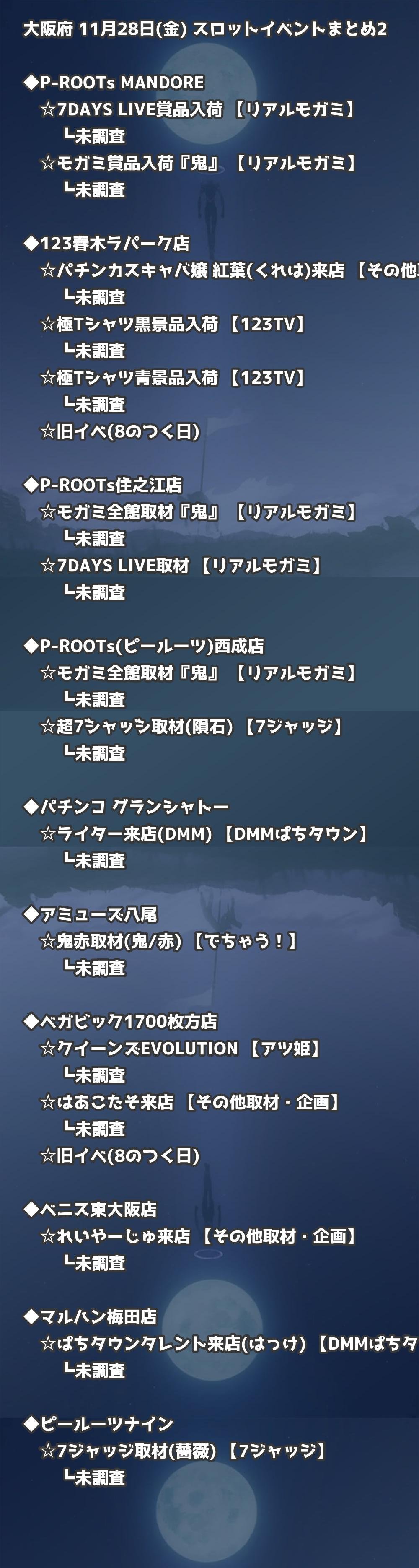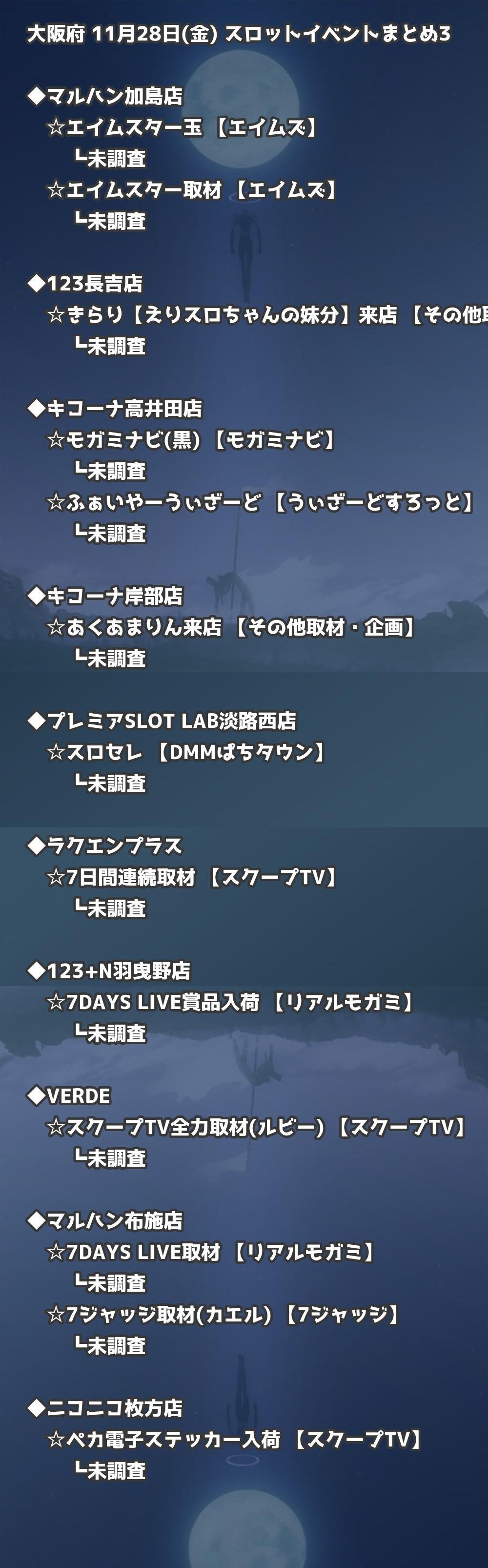 【大阪府】11月28日(金) パチンコホールイベント取材まとめ記事です。