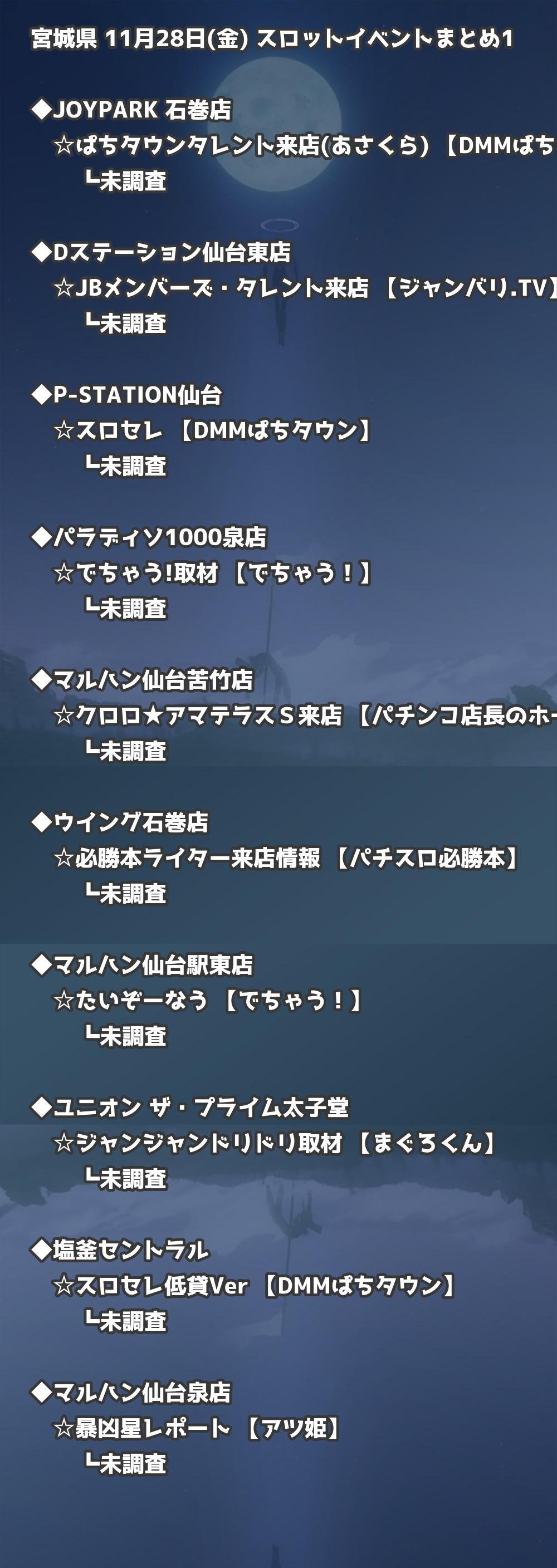 📊 宮城県 11月28日(金) 勝てるパチンコ・スロット取材店舗一覧|おすすめ順