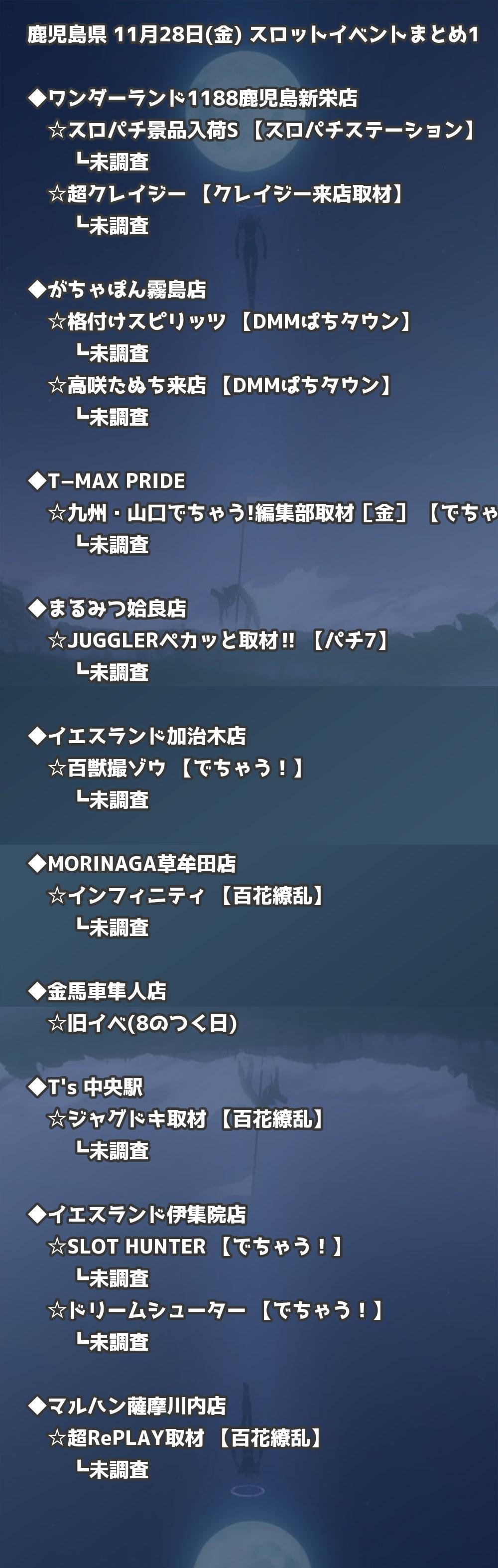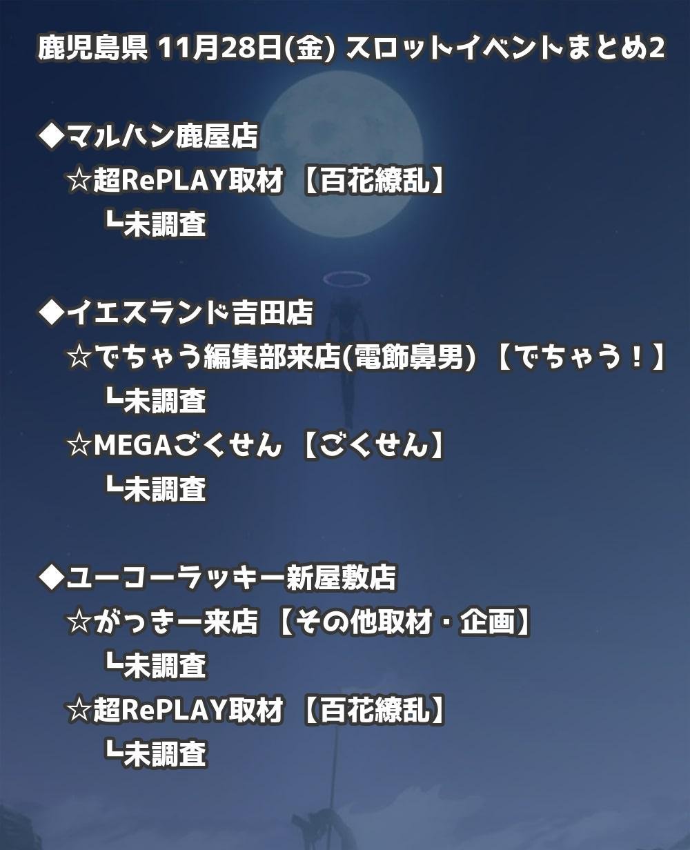 【鹿児島県】11月28日(金) パチンコホールイベント取材まとめ記事です。