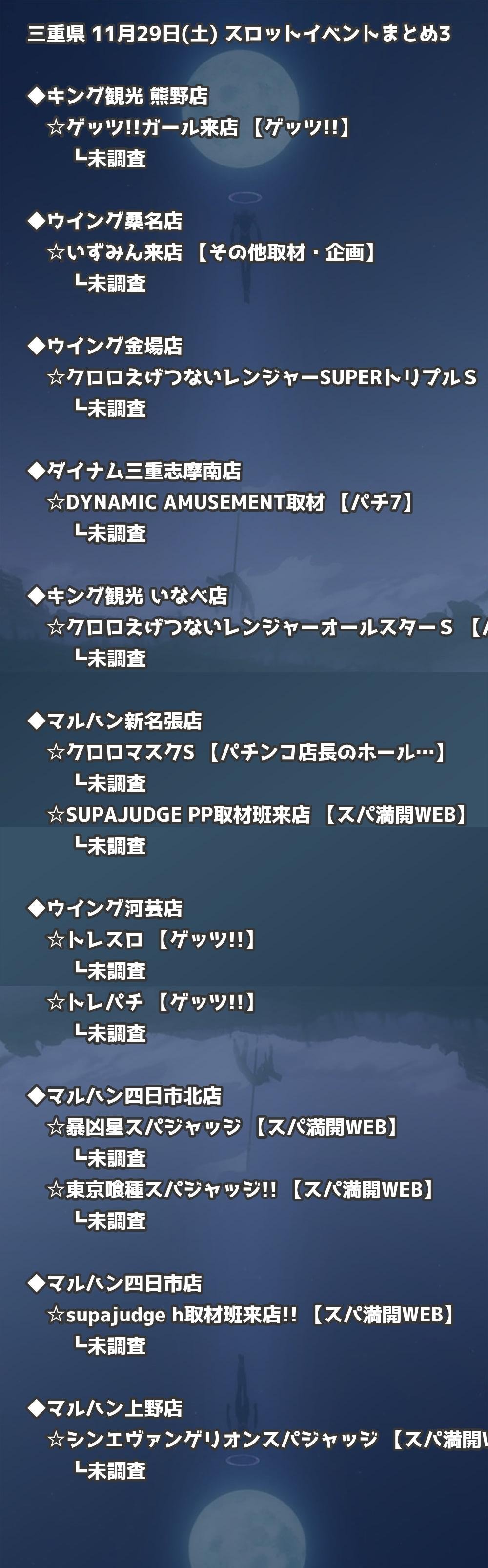 📊 三重県 11月29日(土) 勝てるパチンコ・スロット取材店舗一覧|おすすめ順