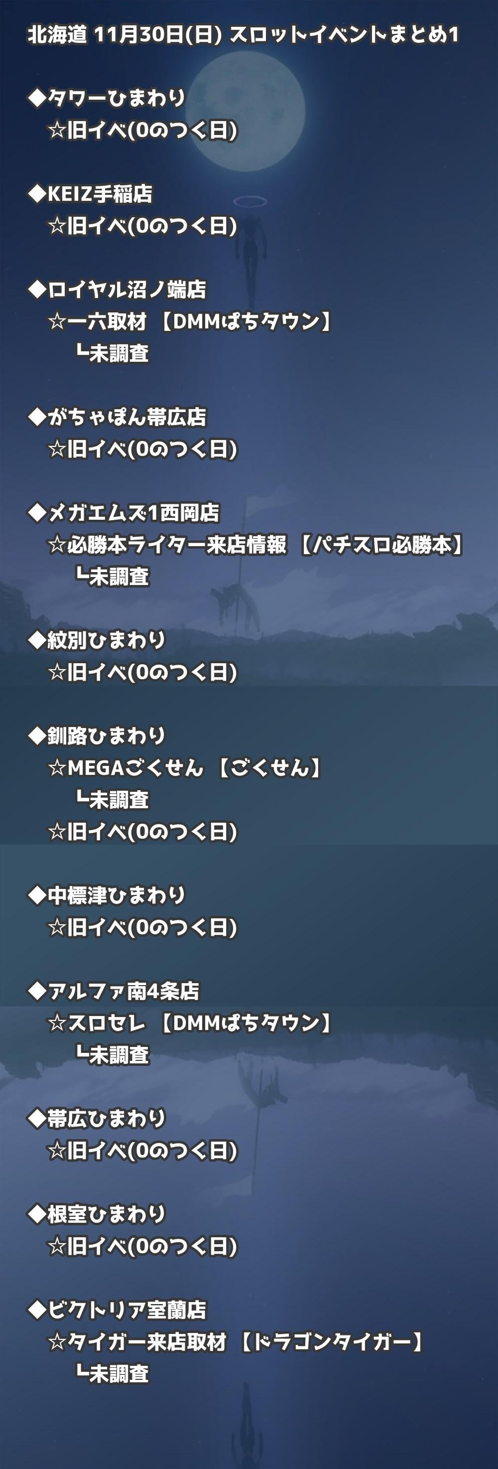 【北海道】11月30日(日) パチンコホールイベント取材まとめ記事です。