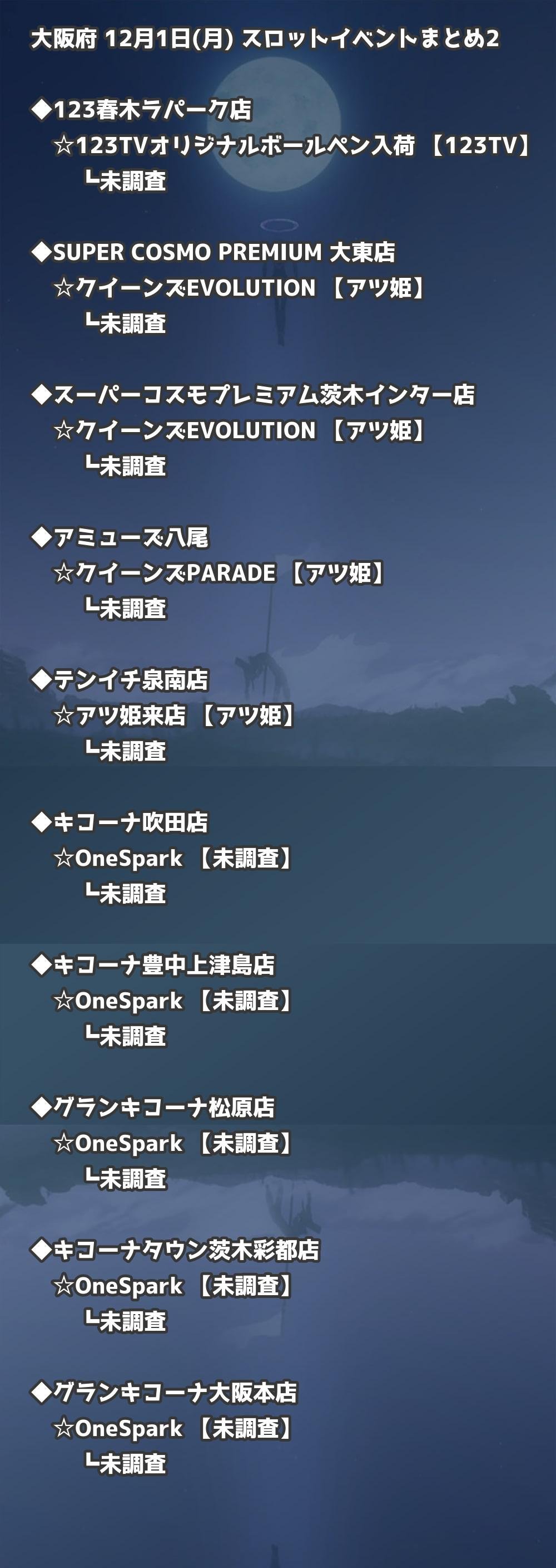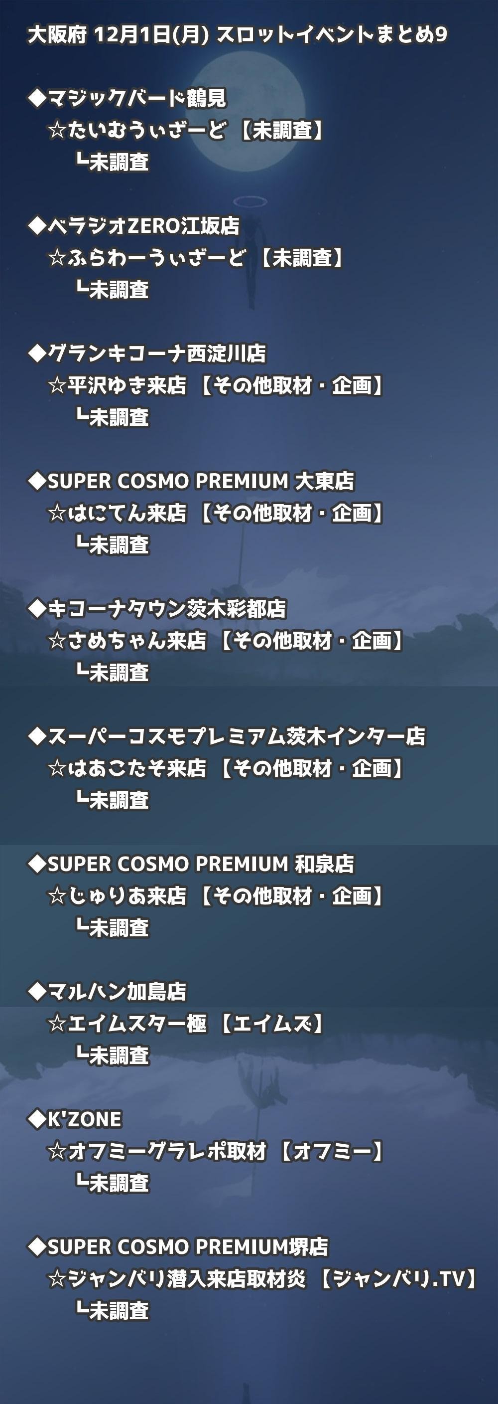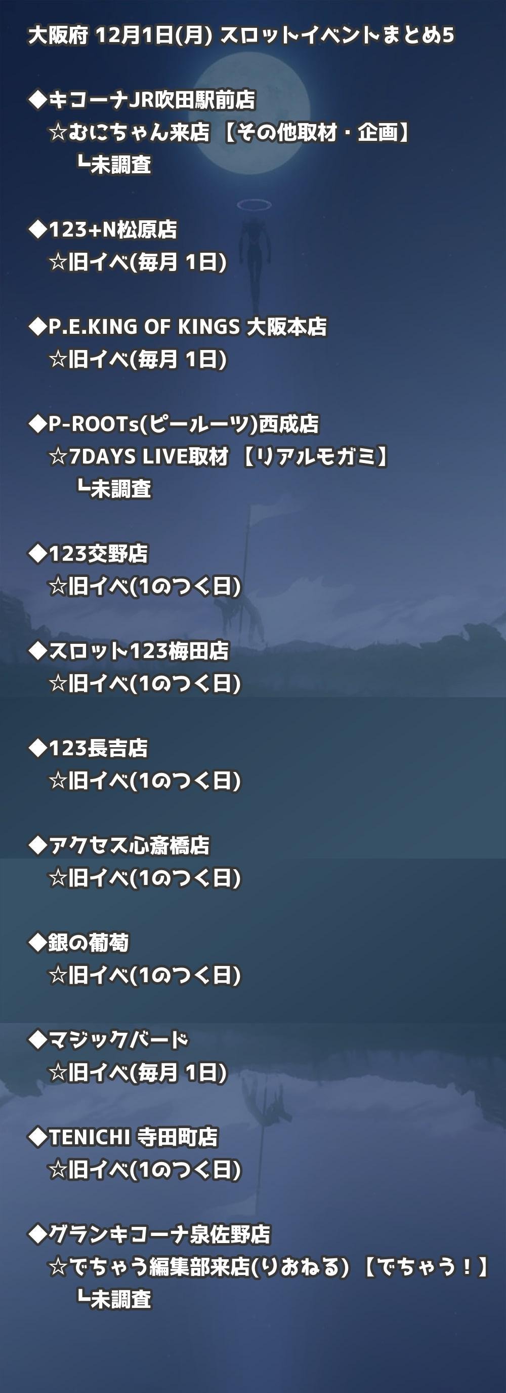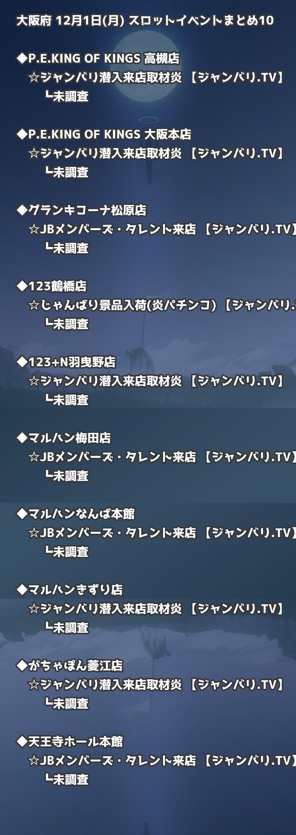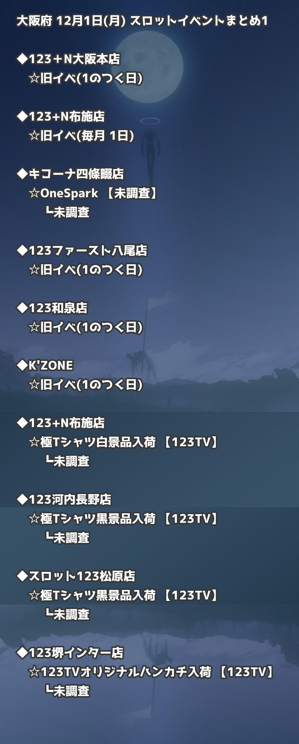 【大阪府】12月1日(月) パチンコホールイベント取材まとめ記事です。