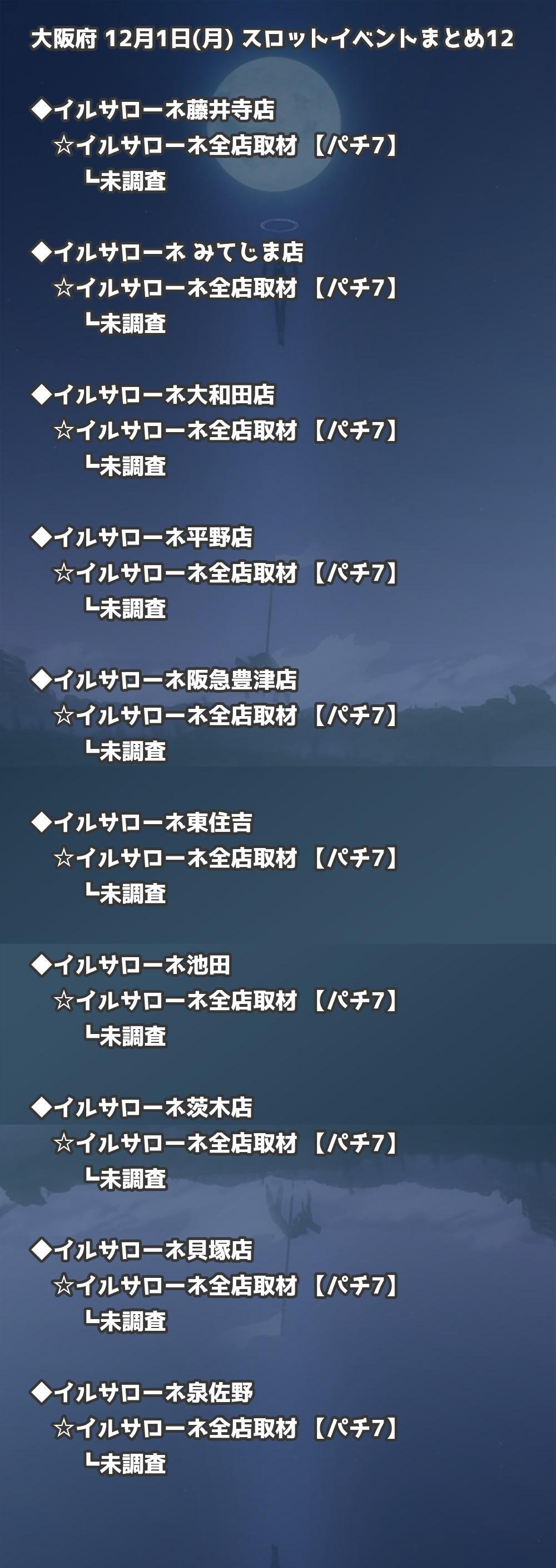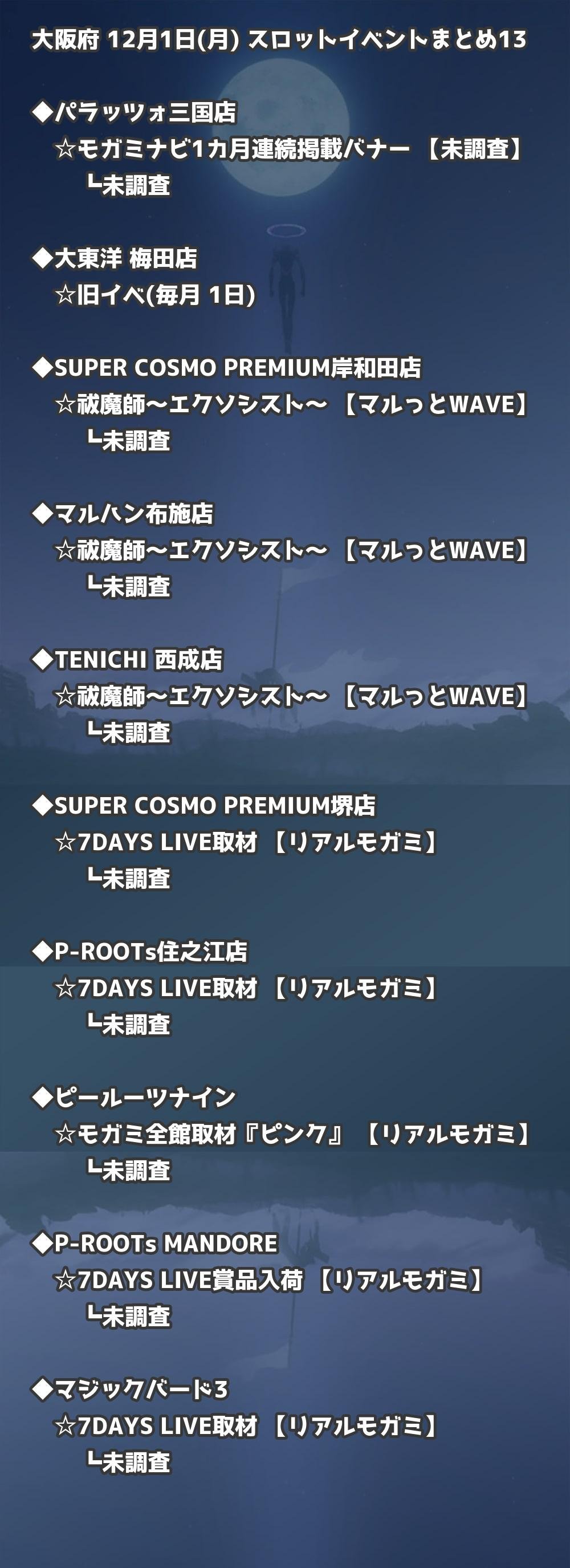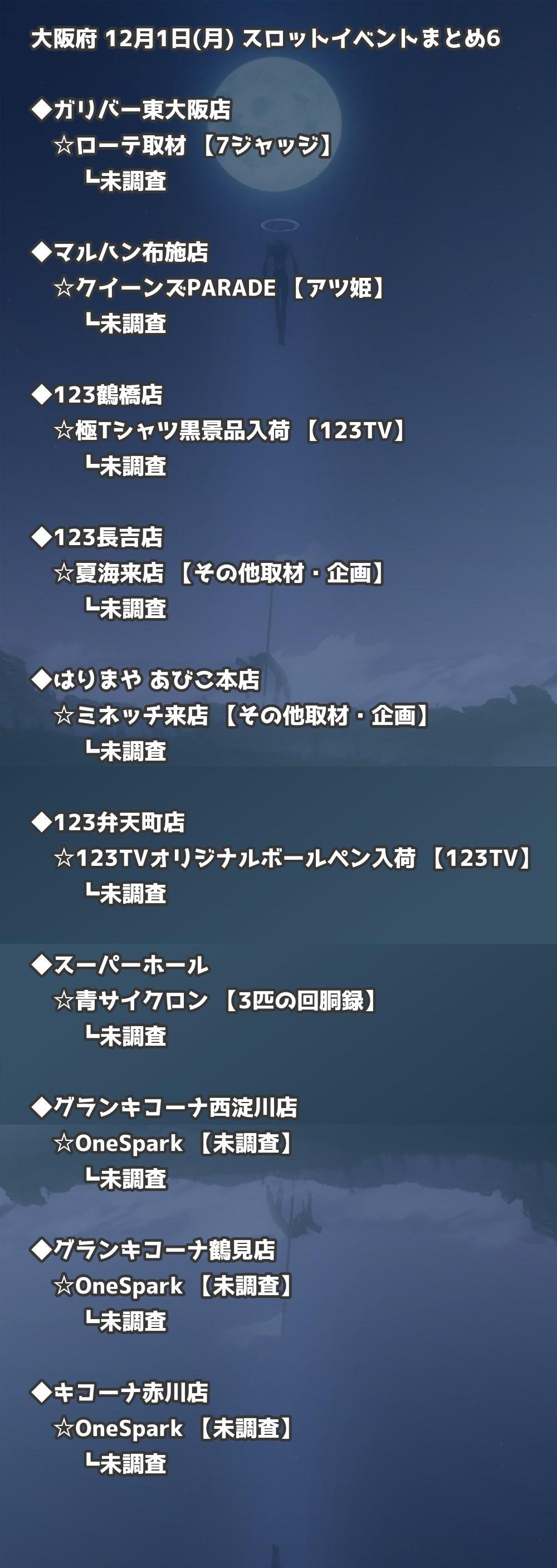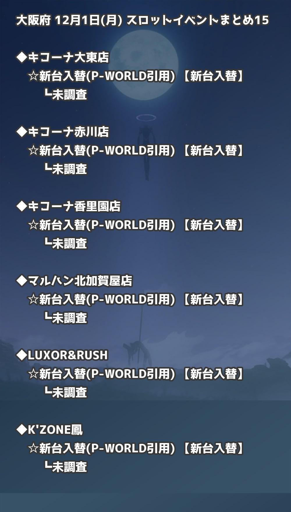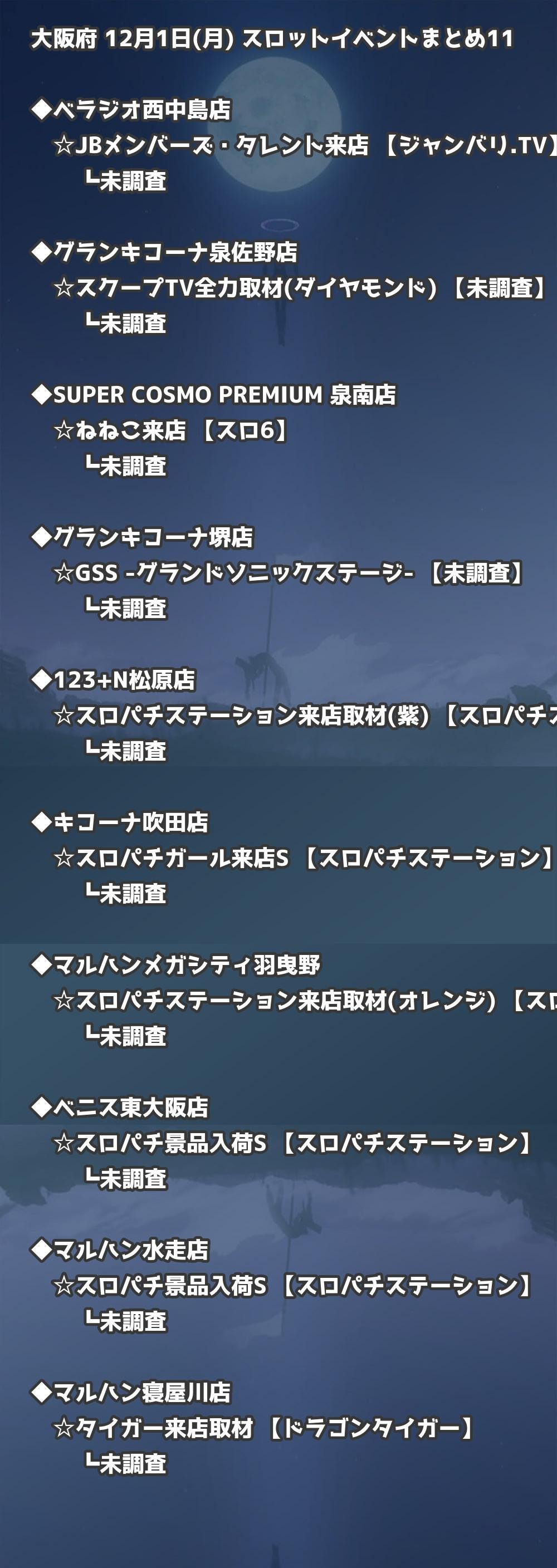 【大阪府】12月1日(月) パチンコホールイベント取材まとめ記事です。