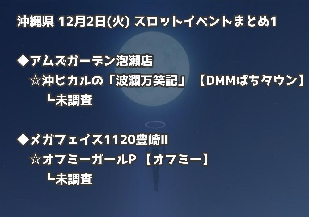 【沖縄県】12月2日(火) パチンコホールイベント取材まとめ記事です。