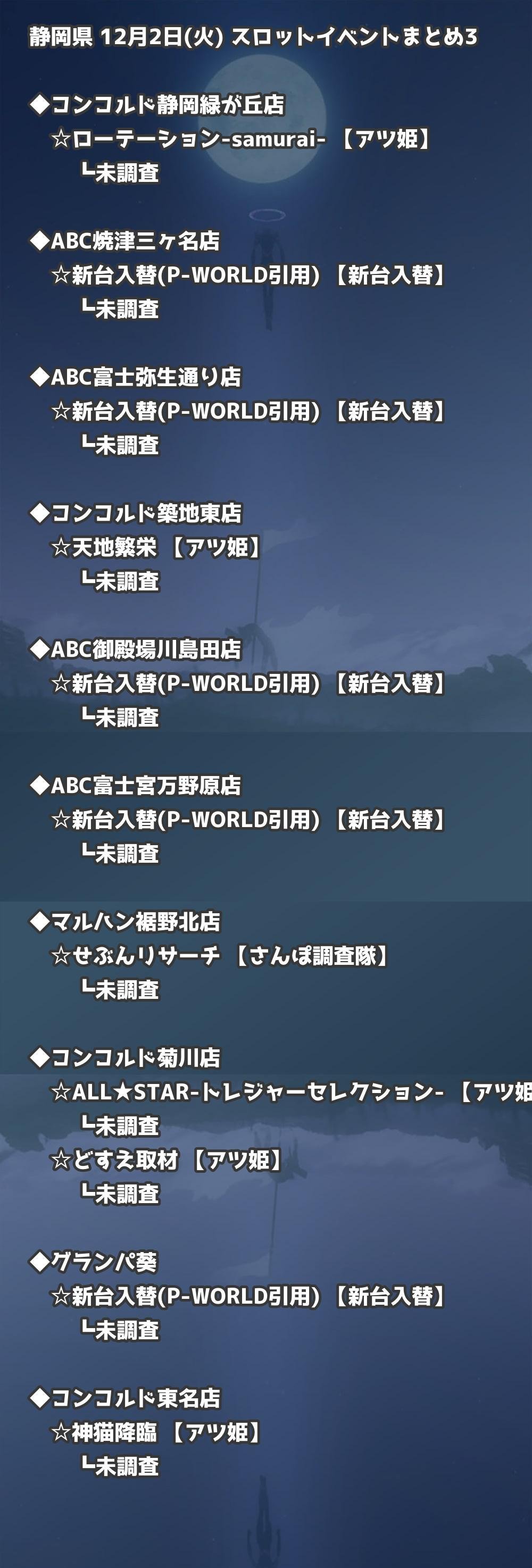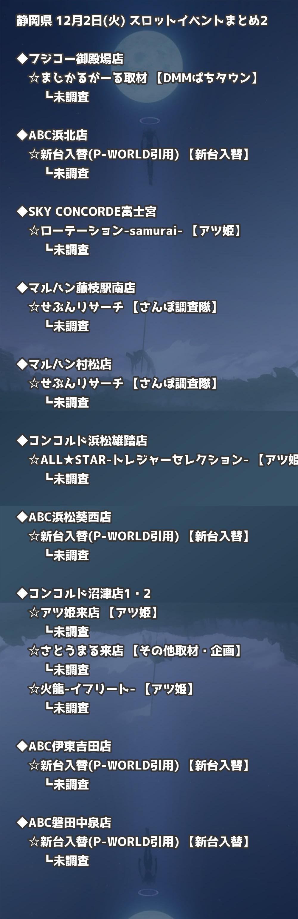 📊 静岡県 12月2日(火) 勝てるパチンコ・スロット取材店舗一覧|おすすめ順