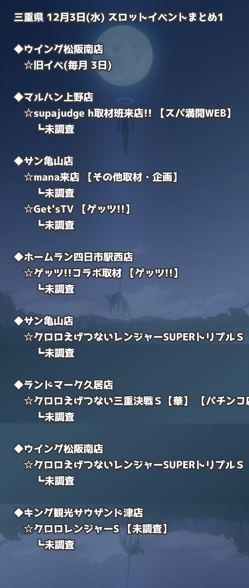 【三重県】12月3日(水) パチンコホールイベント取材まとめ記事です。