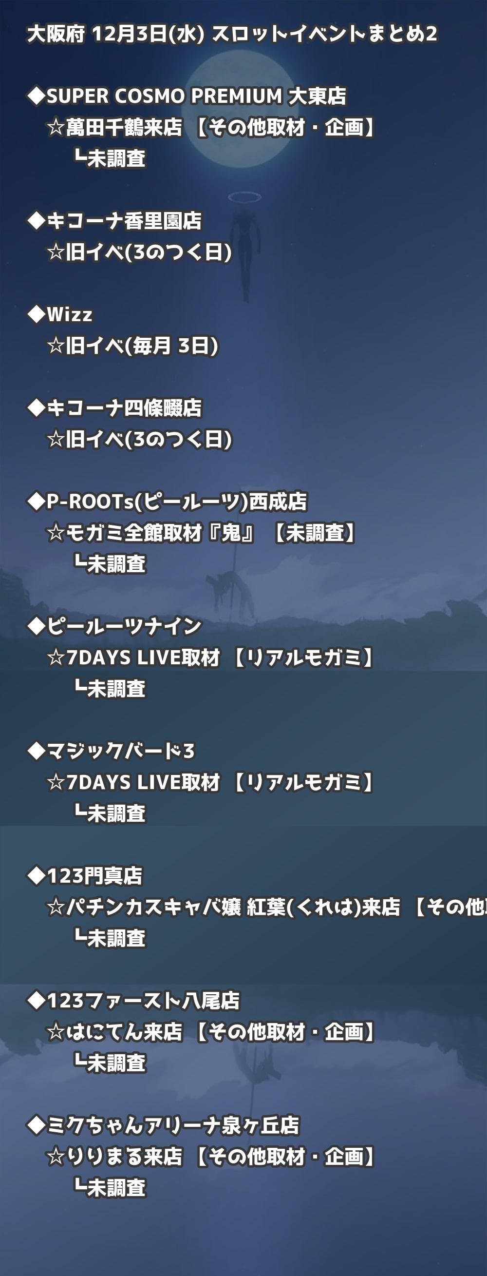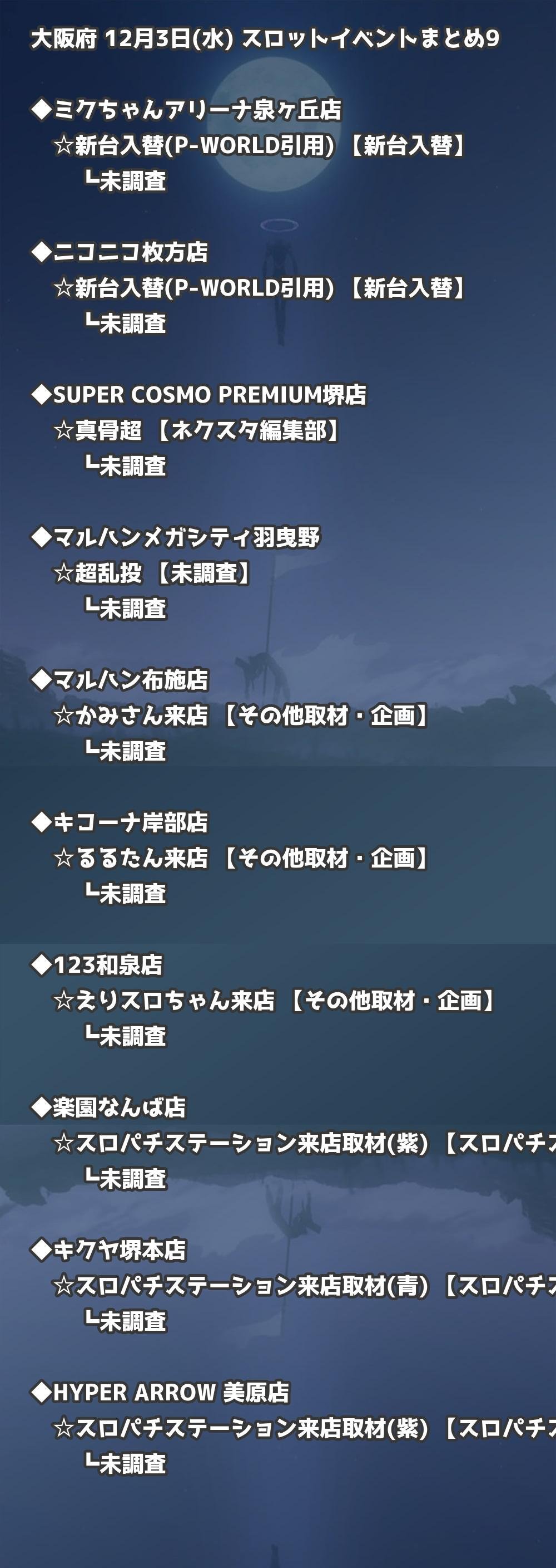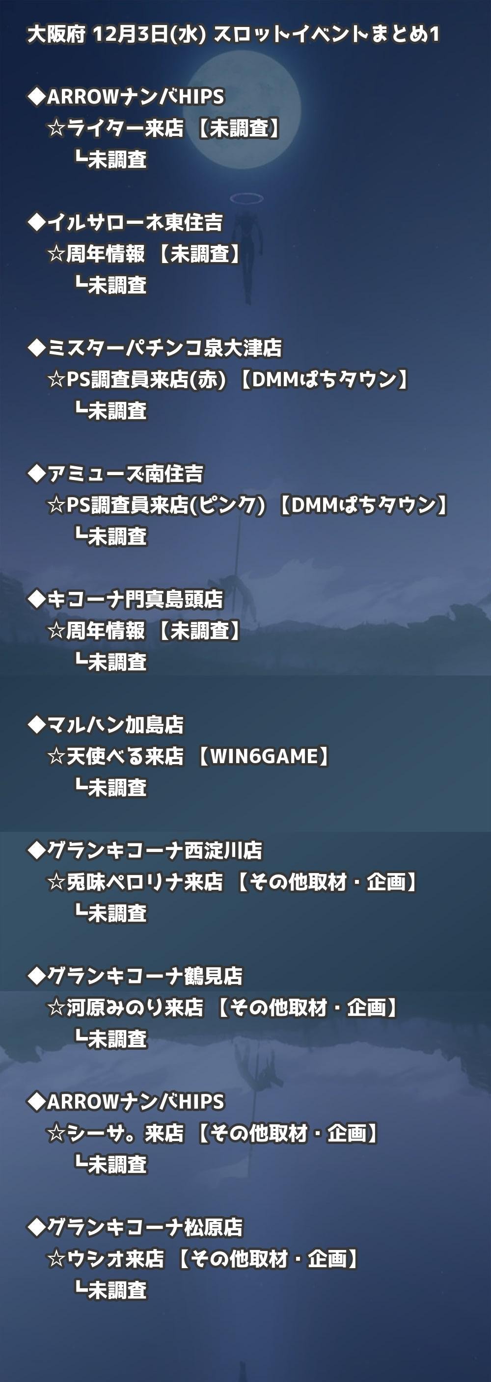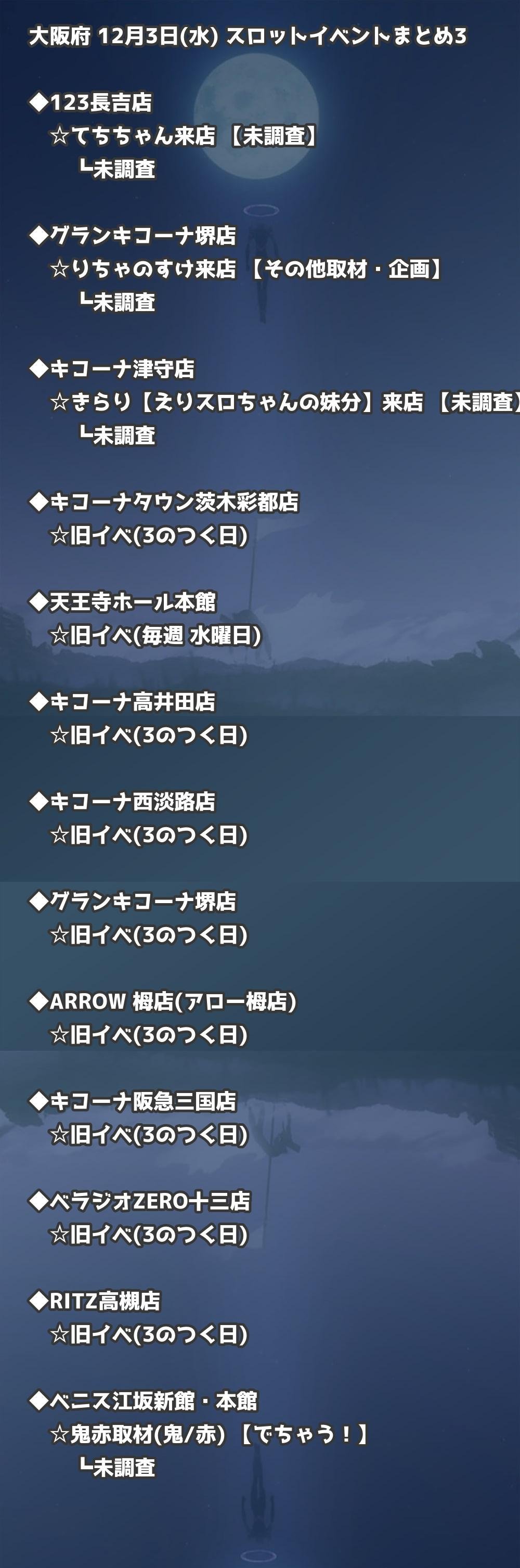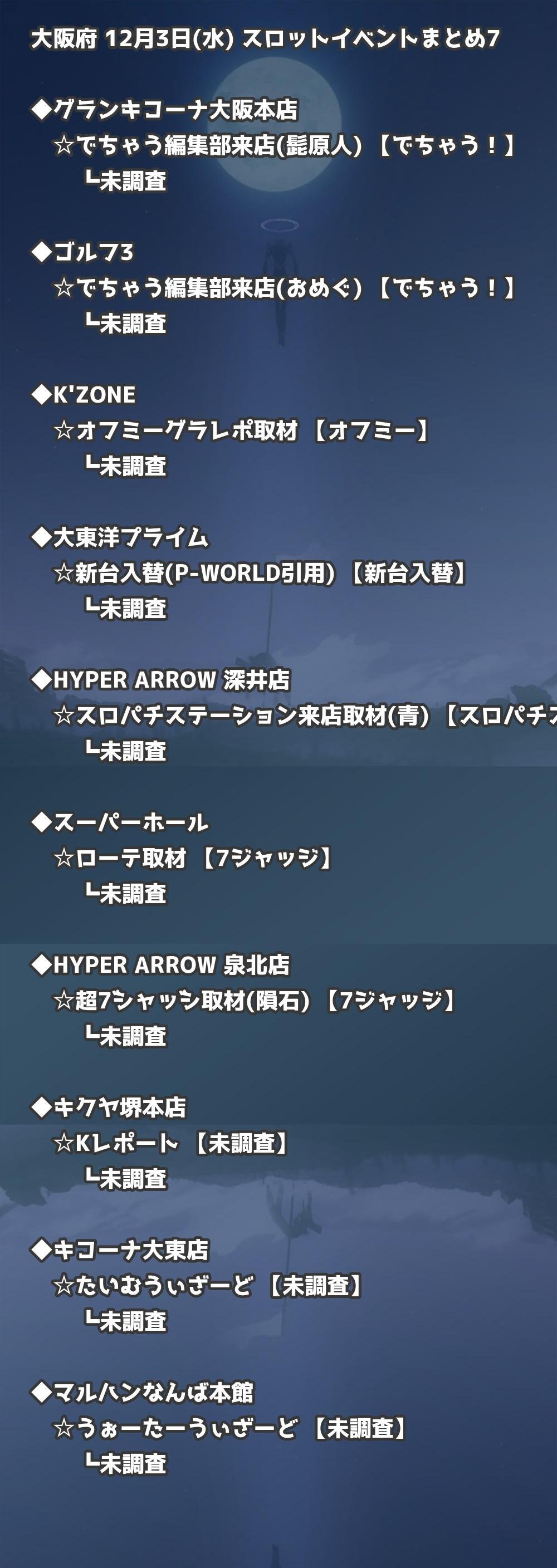 【大阪府】12月3日(水) パチンコホールイベント取材まとめ記事です。
