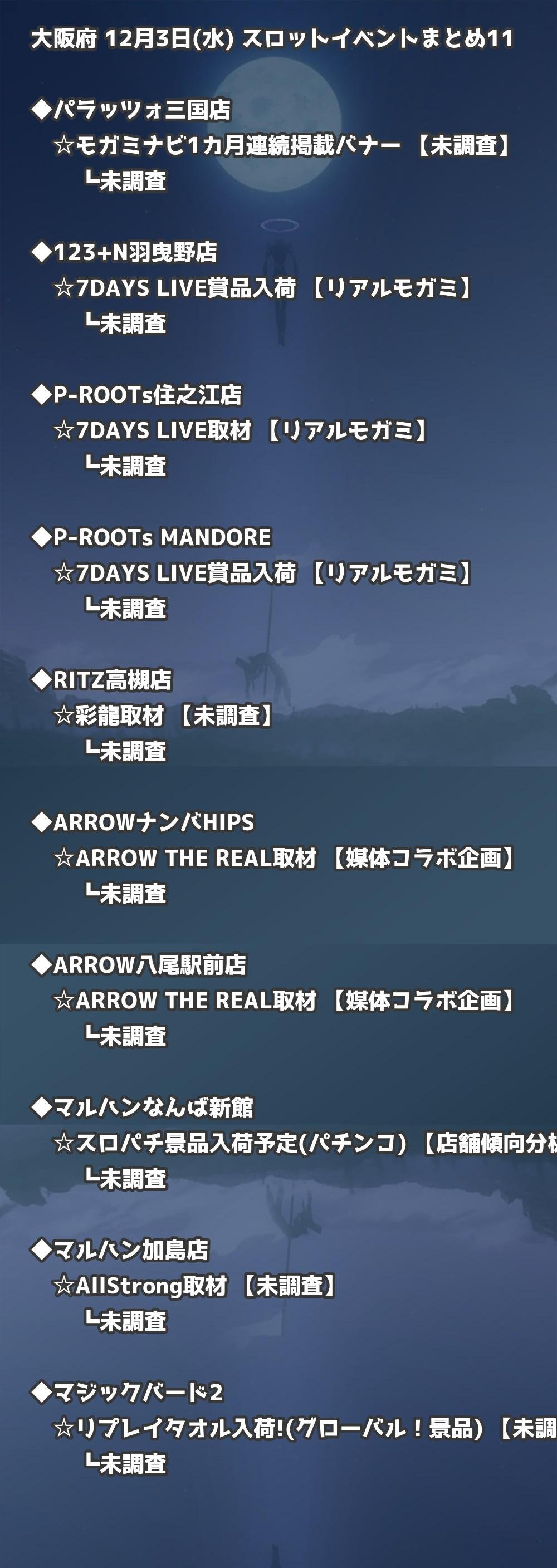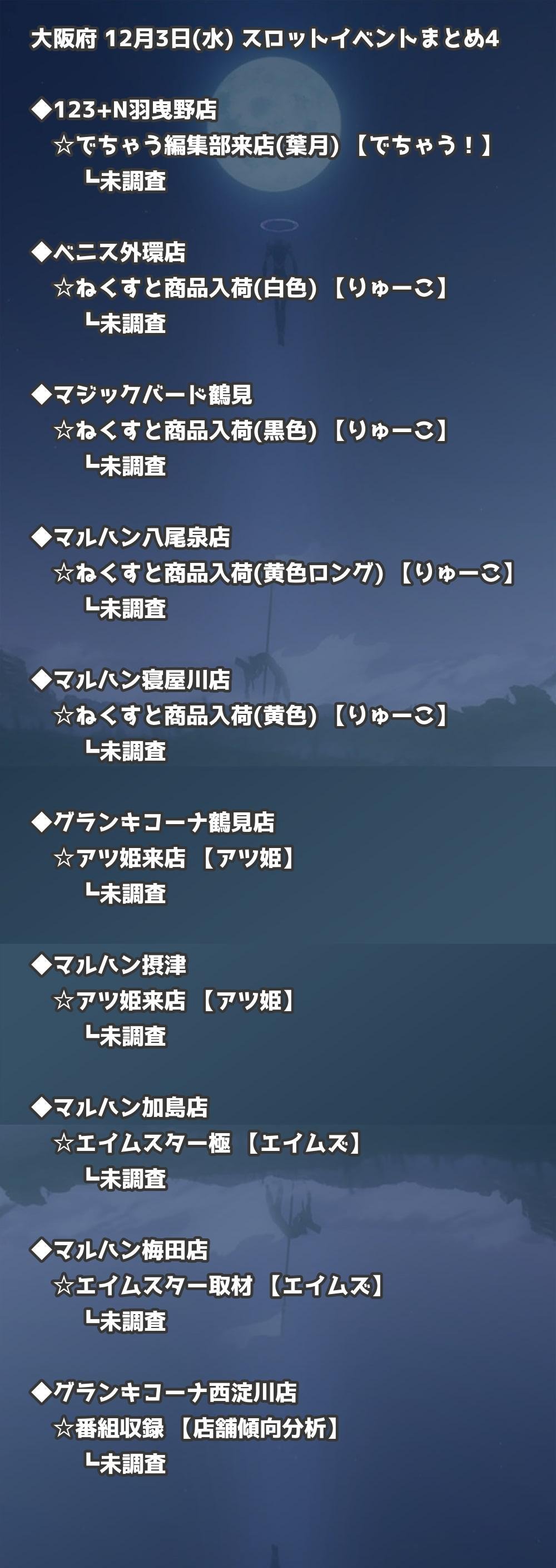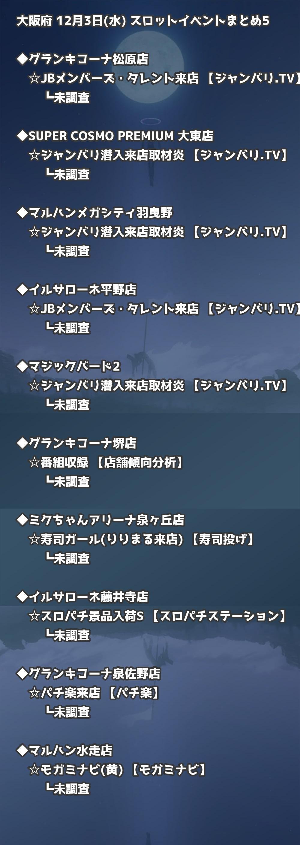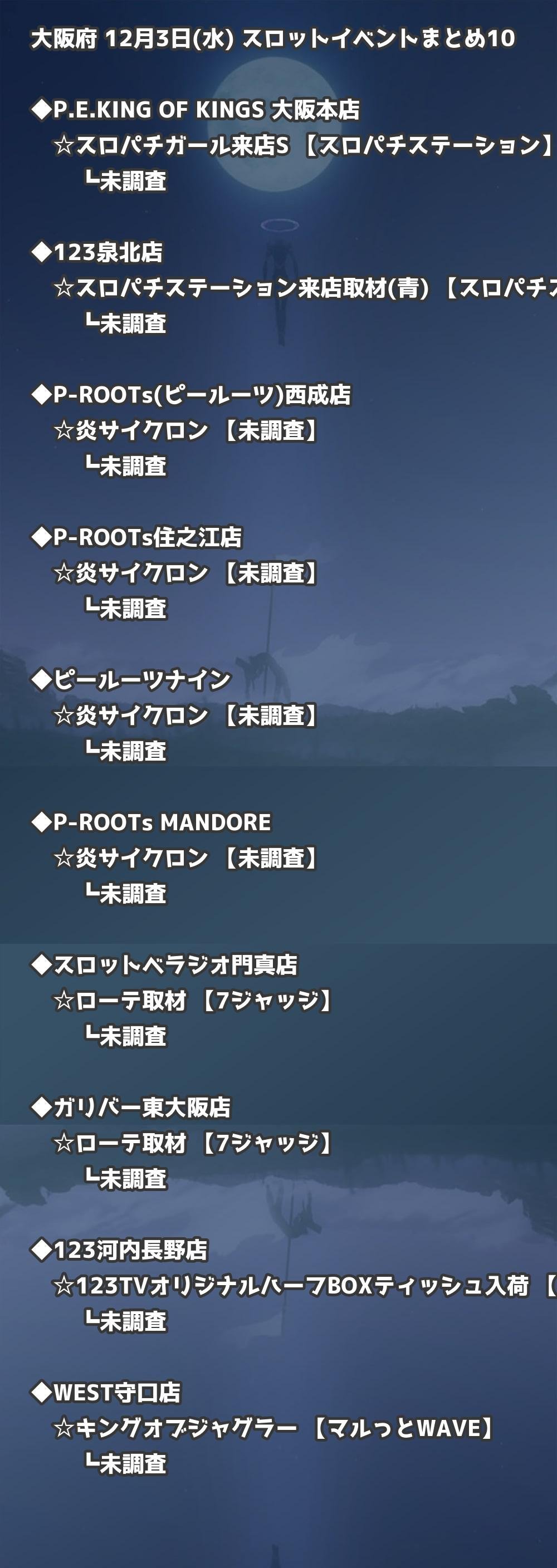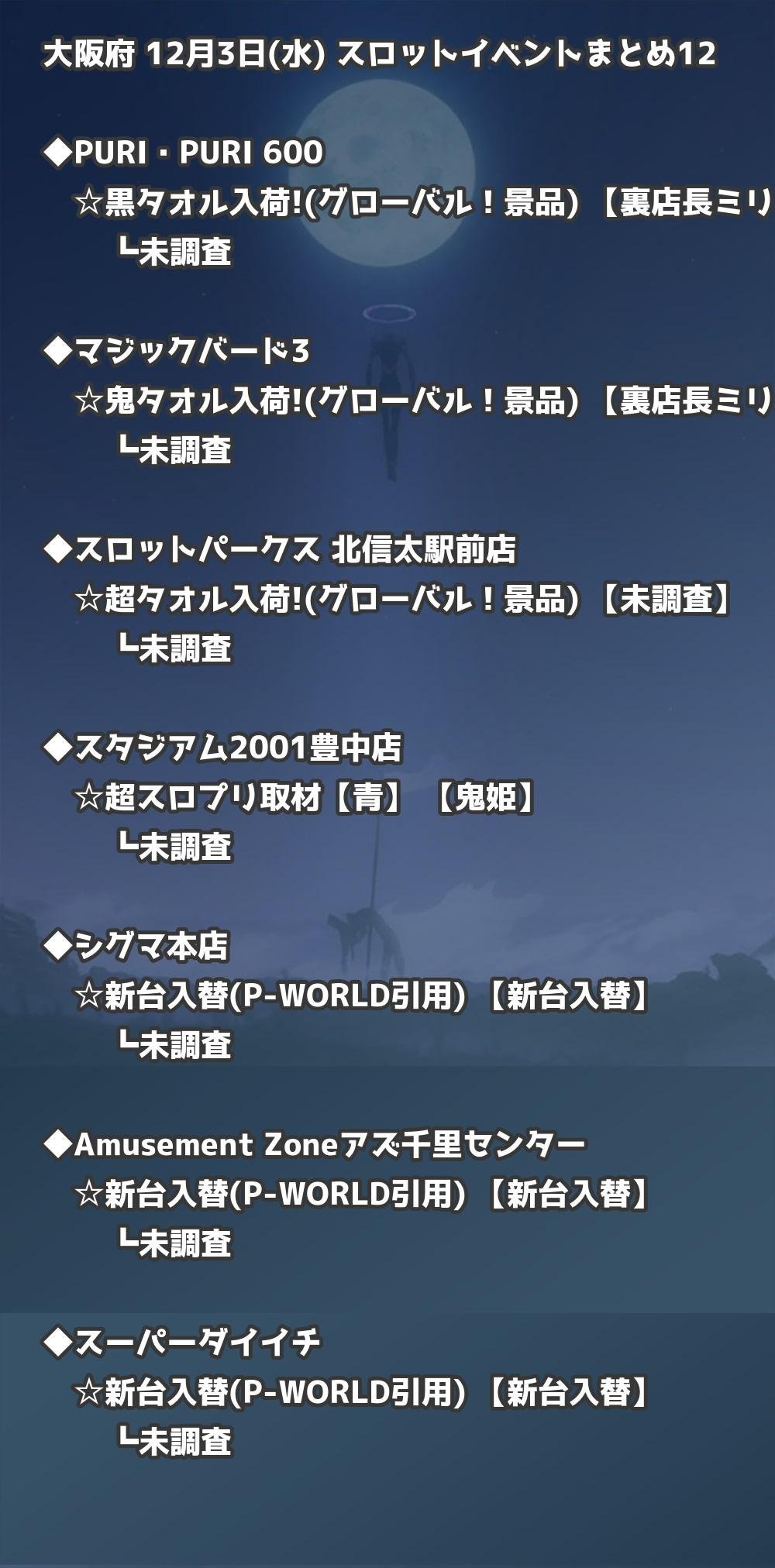 【大阪府】12月3日(水) パチンコホールイベント取材まとめ記事です。