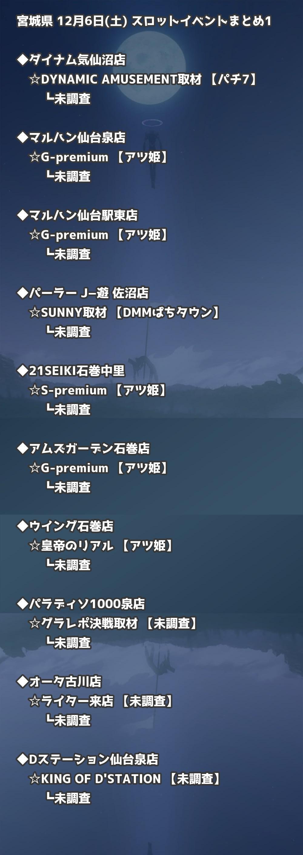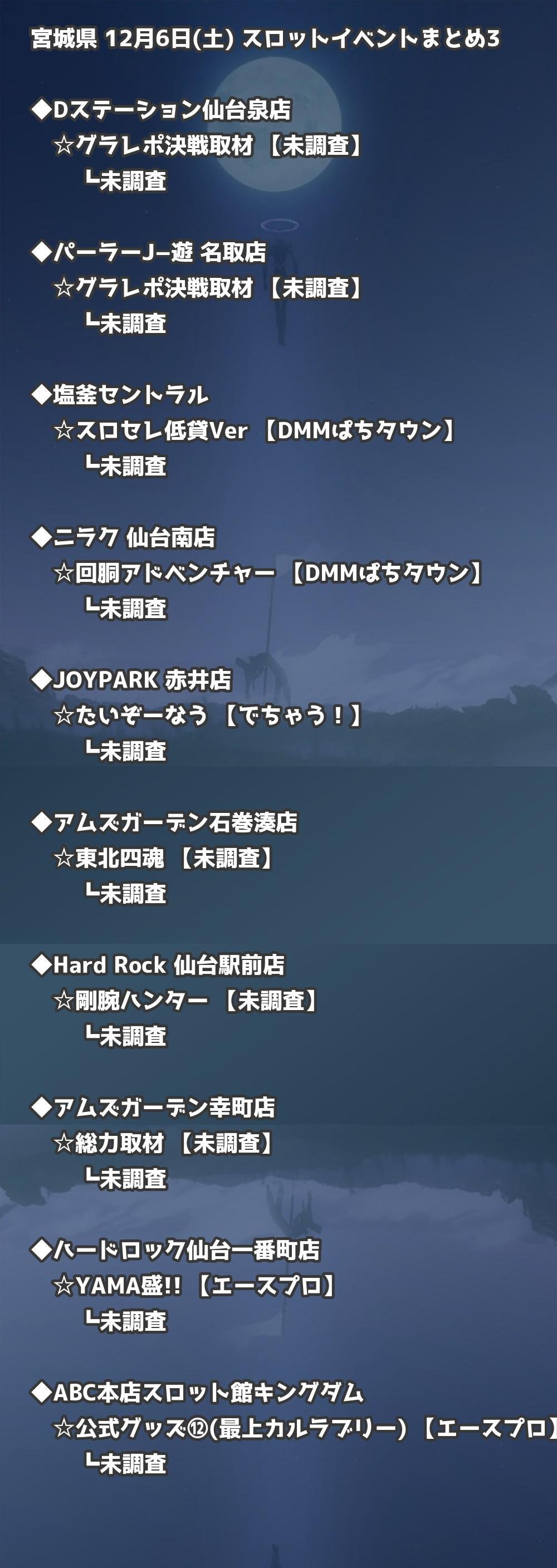 【宮城県】12月6日(土) パチンコホールイベント取材まとめ記事です。
