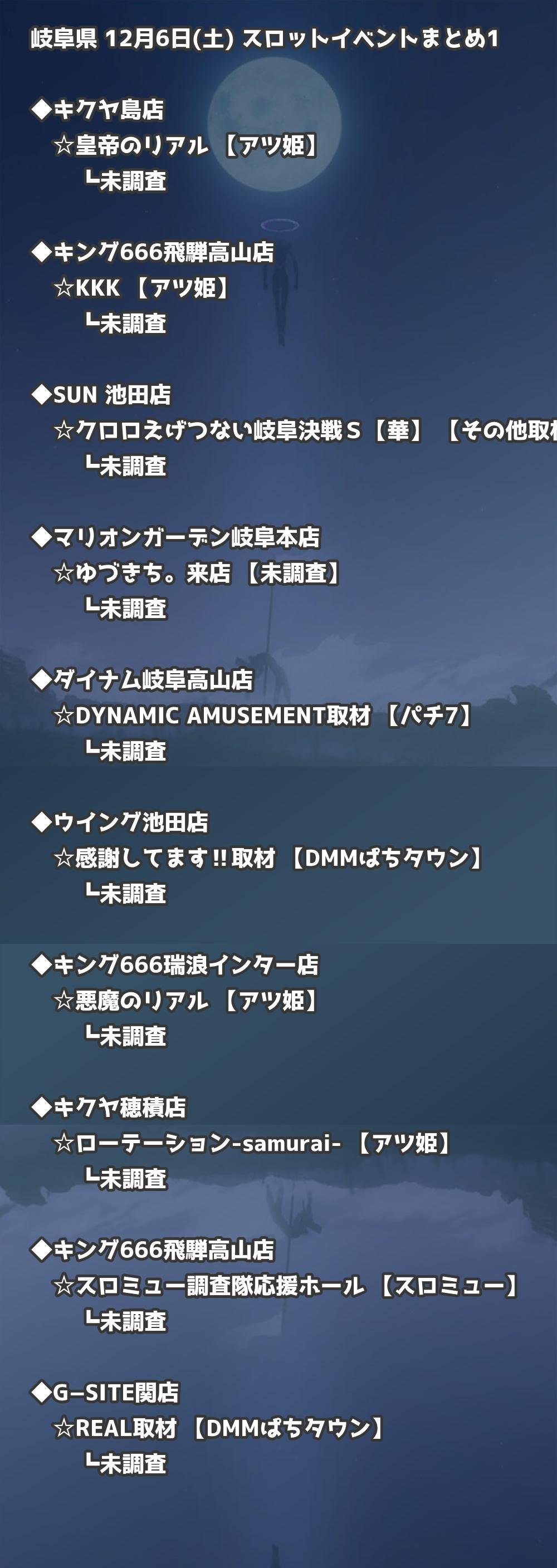 【岐阜県】12月6日(土) パチンコホールイベント取材まとめ記事です。