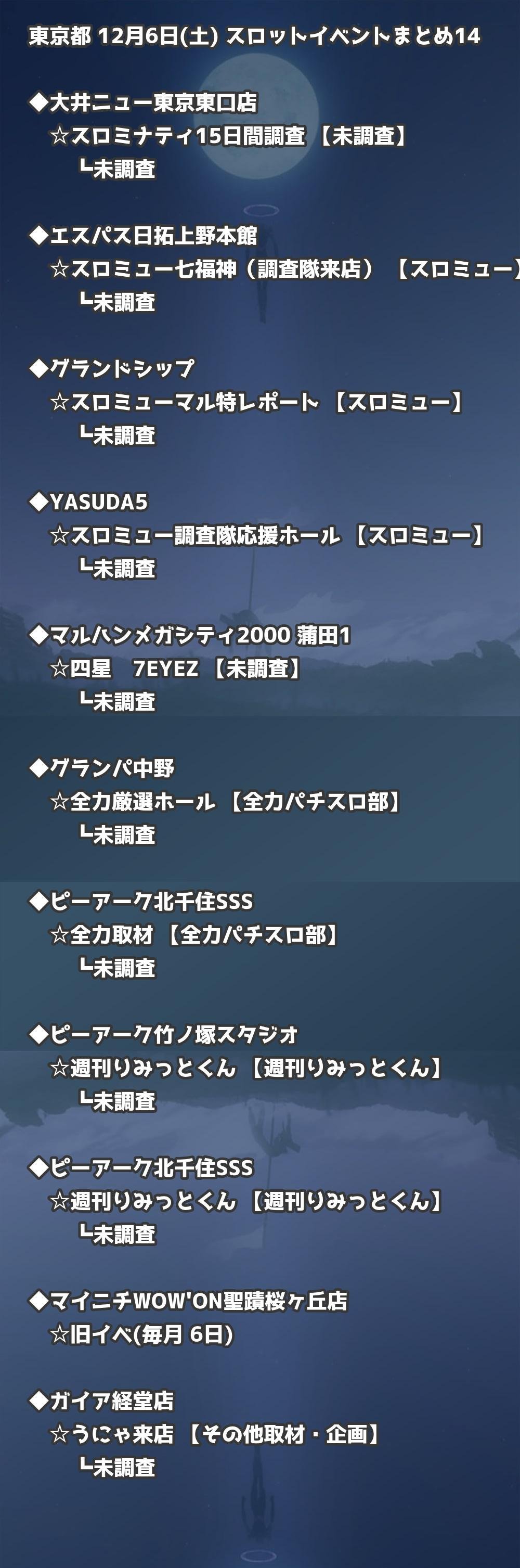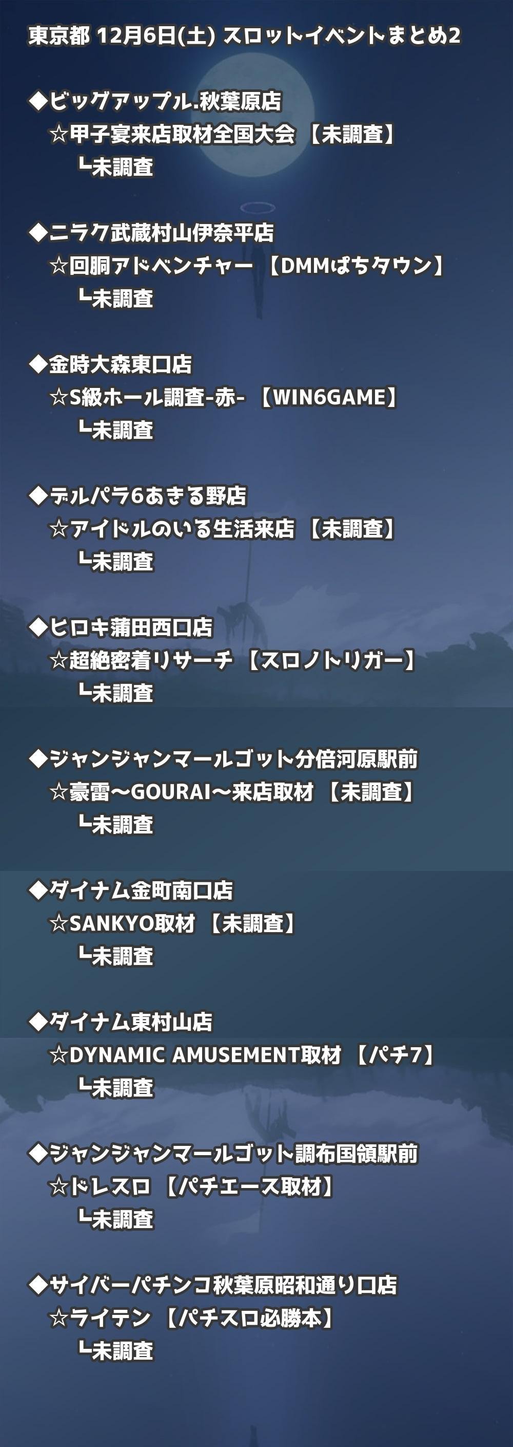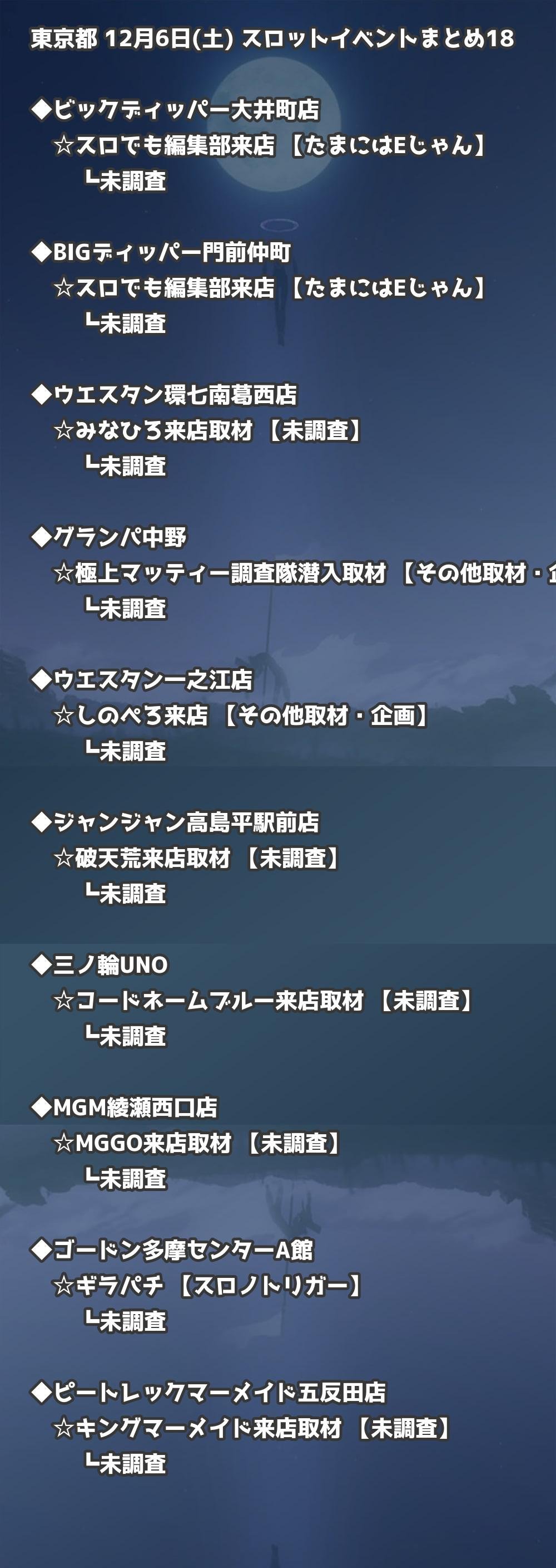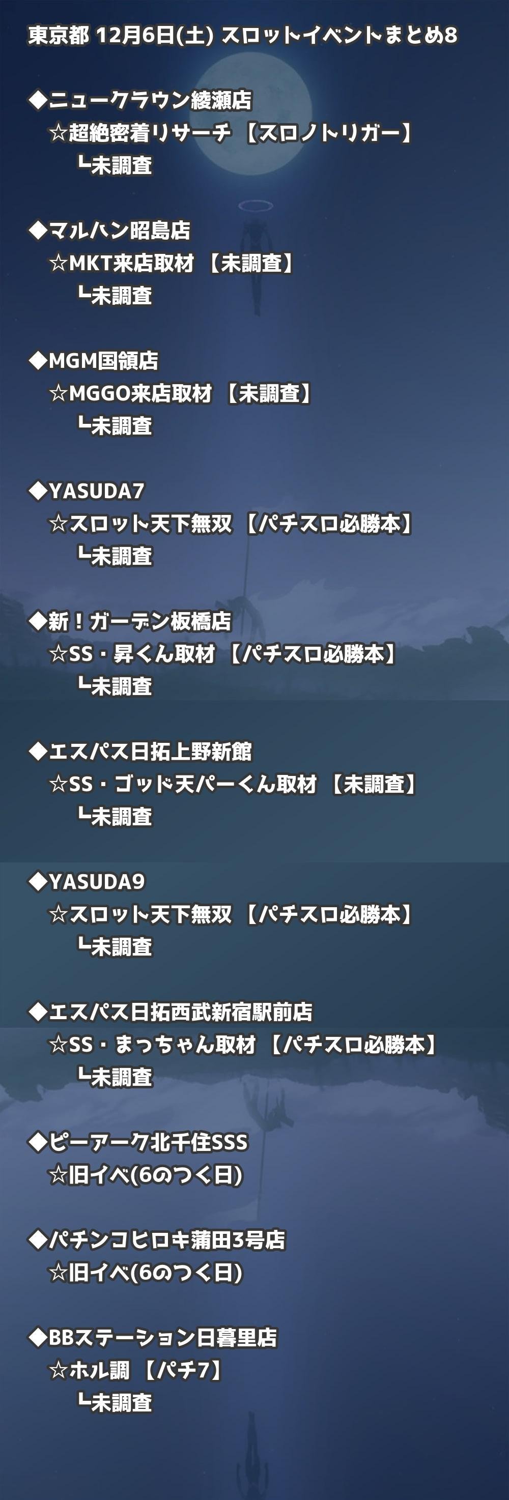 【東京都】12月6日(土) パチンコホールイベント取材まとめ記事です。