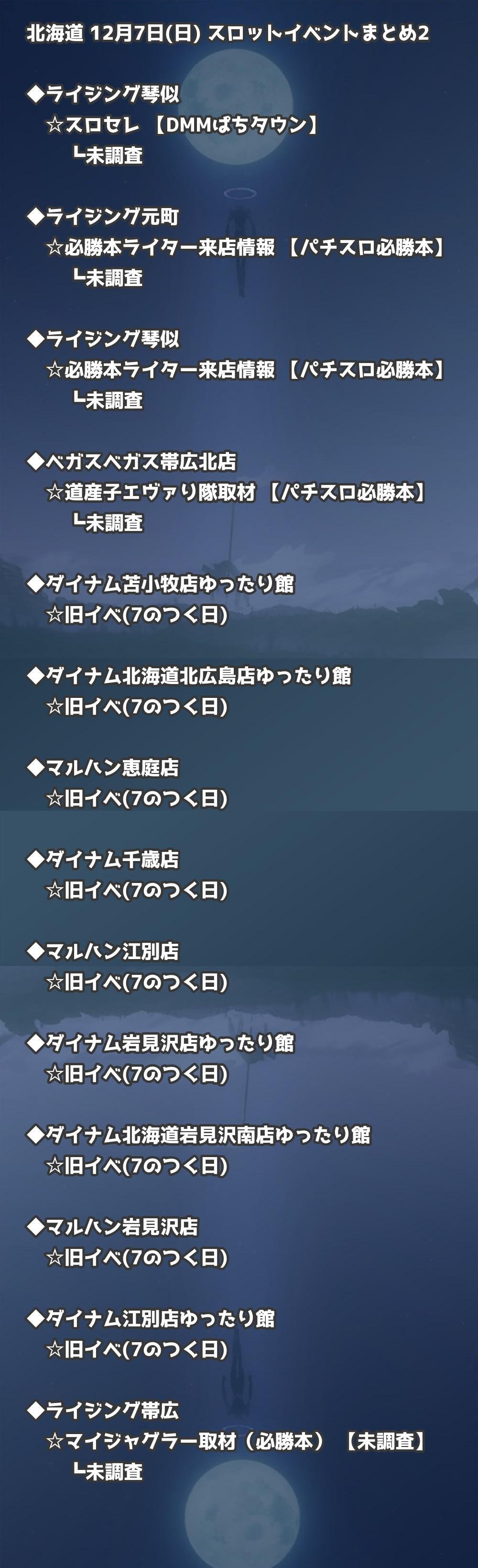 【北海道】12月7日(日) パチンコホールイベント取材まとめ記事です。