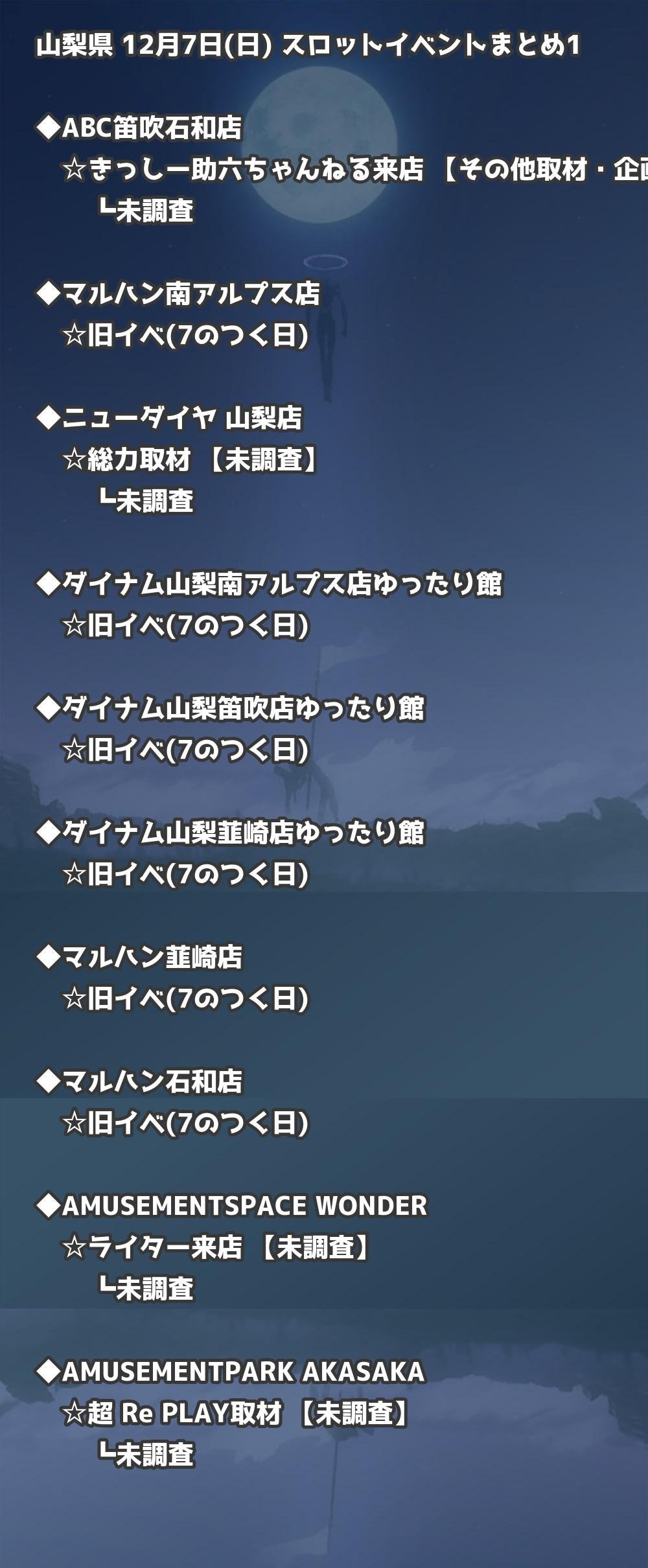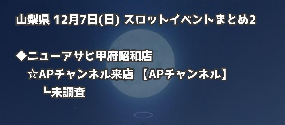 【山梨県】12月7日(日) パチンコホールイベント取材まとめ記事です。