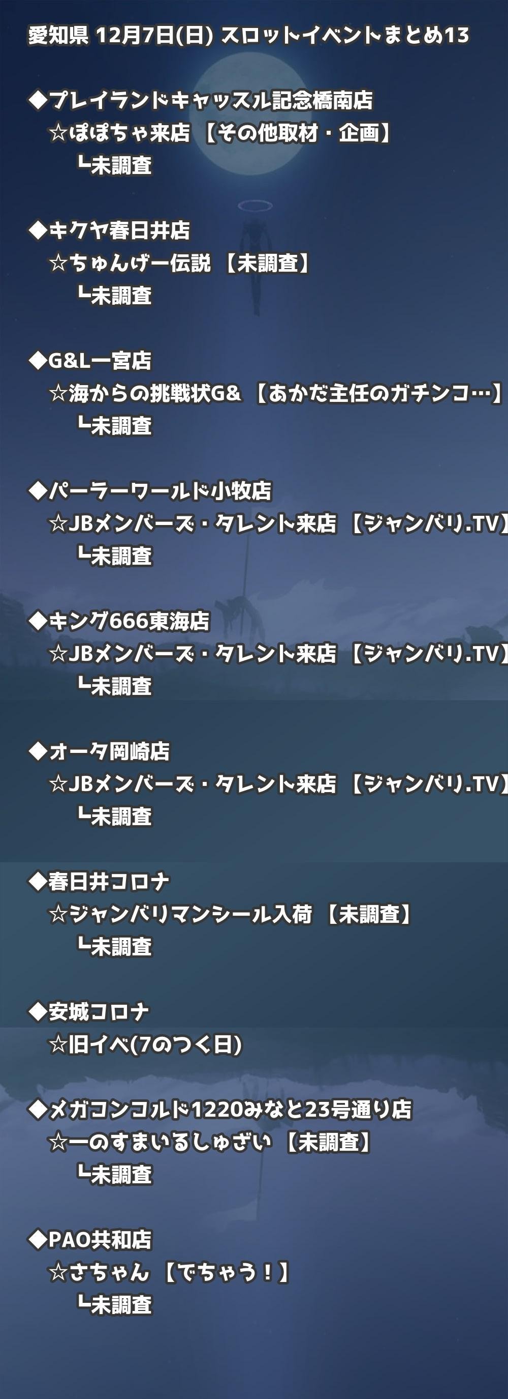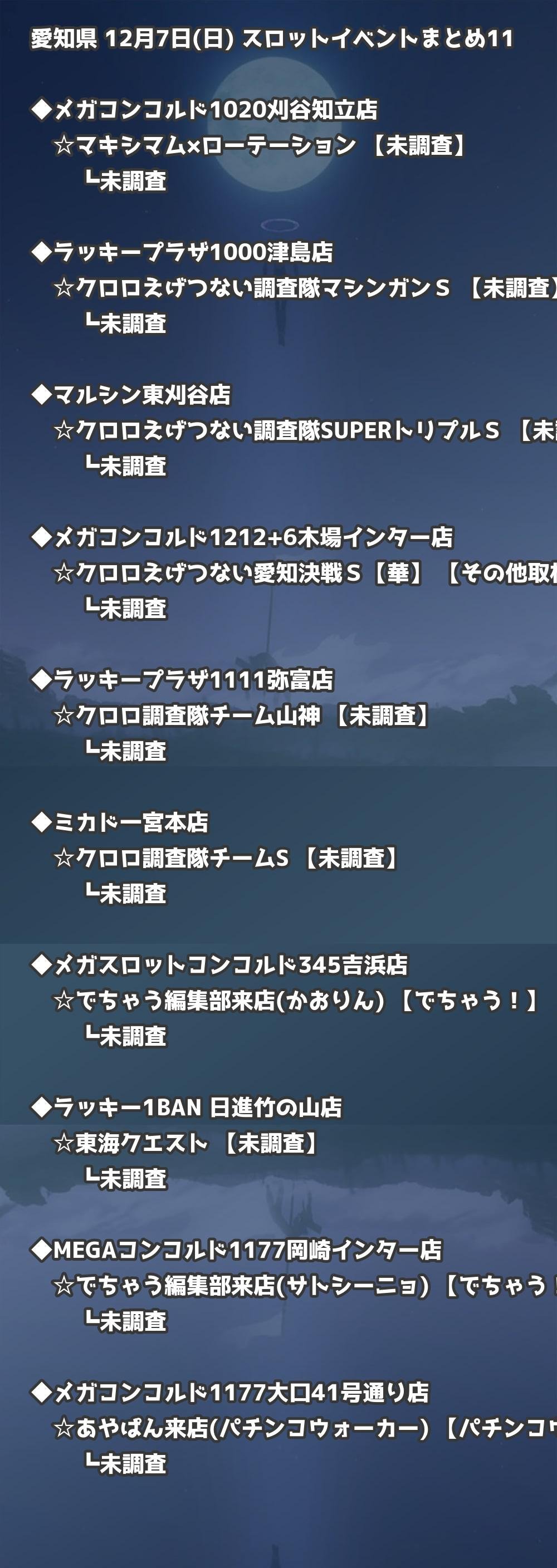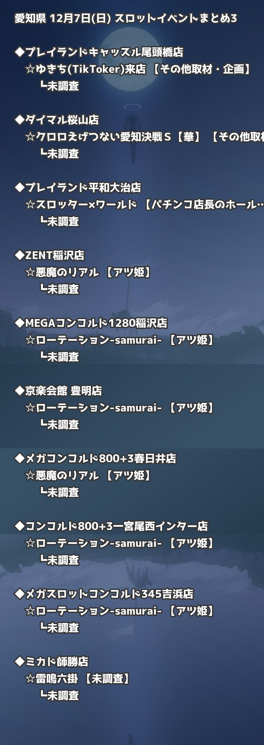 【愛知県】12月7日(日) パチンコホールイベント取材まとめ記事です。