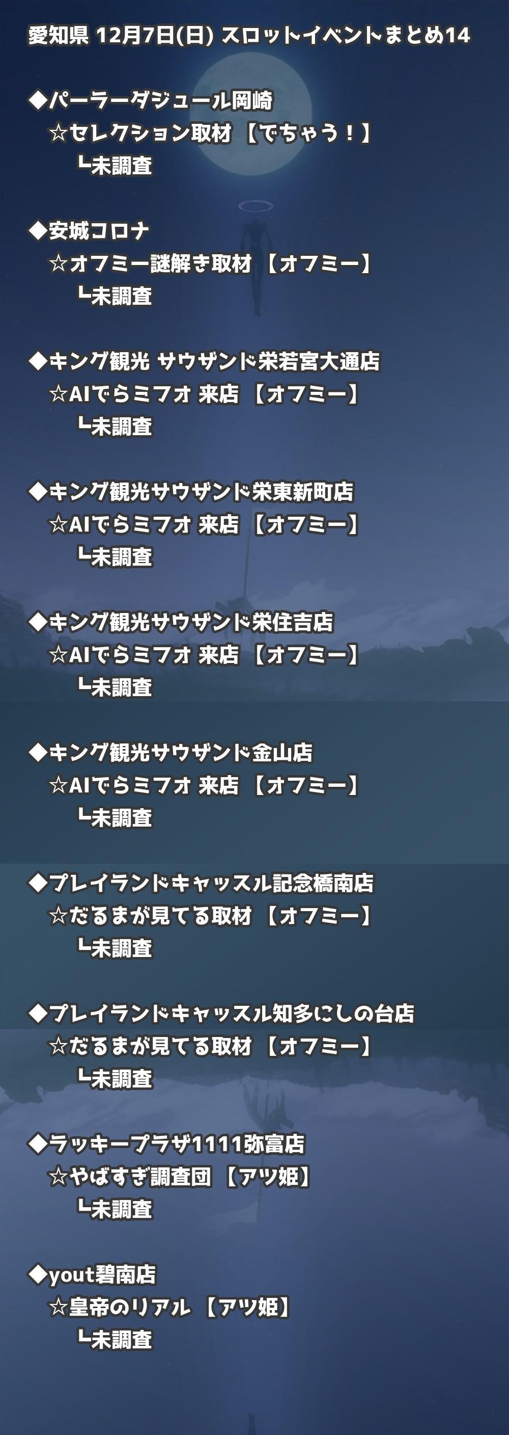 📊 愛知県 12月7日(日) 勝てるパチンコ・スロット取材店舗一覧|おすすめ順