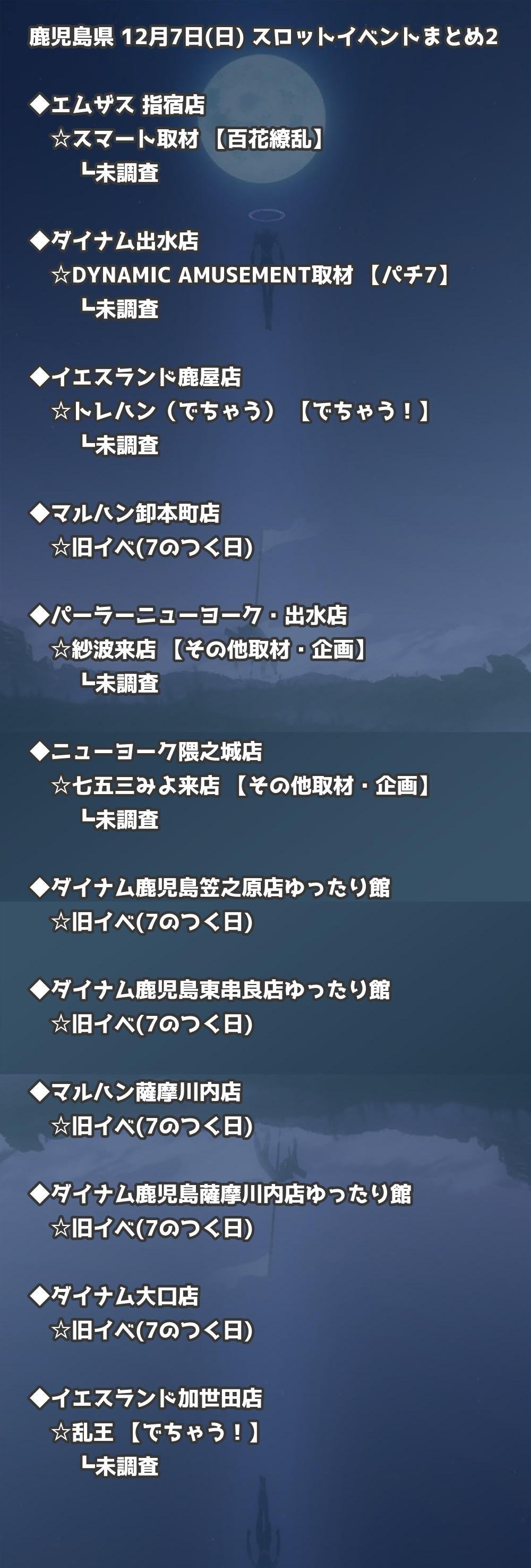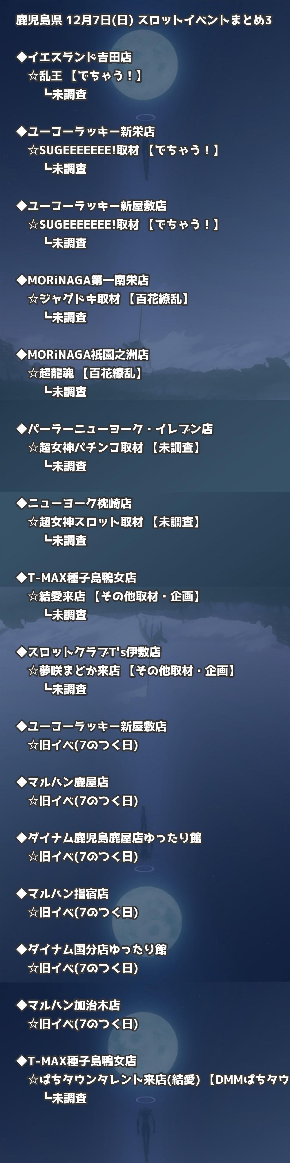 【鹿児島県】12月7日(日) パチンコホールイベント取材まとめ記事です。