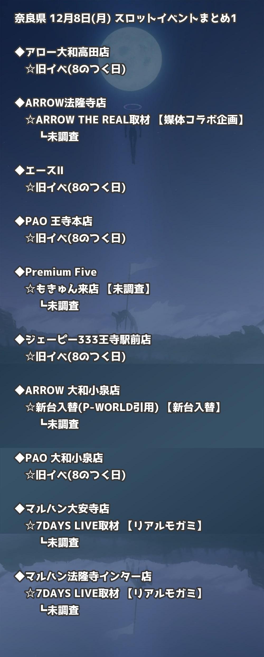 【奈良県】12月8日(月) パチンコホールイベント取材まとめ記事です。