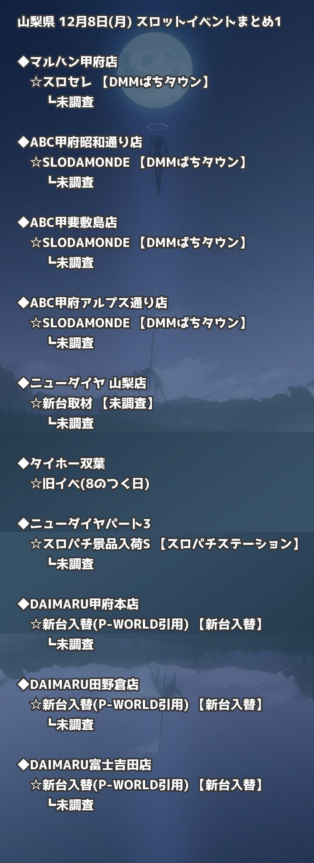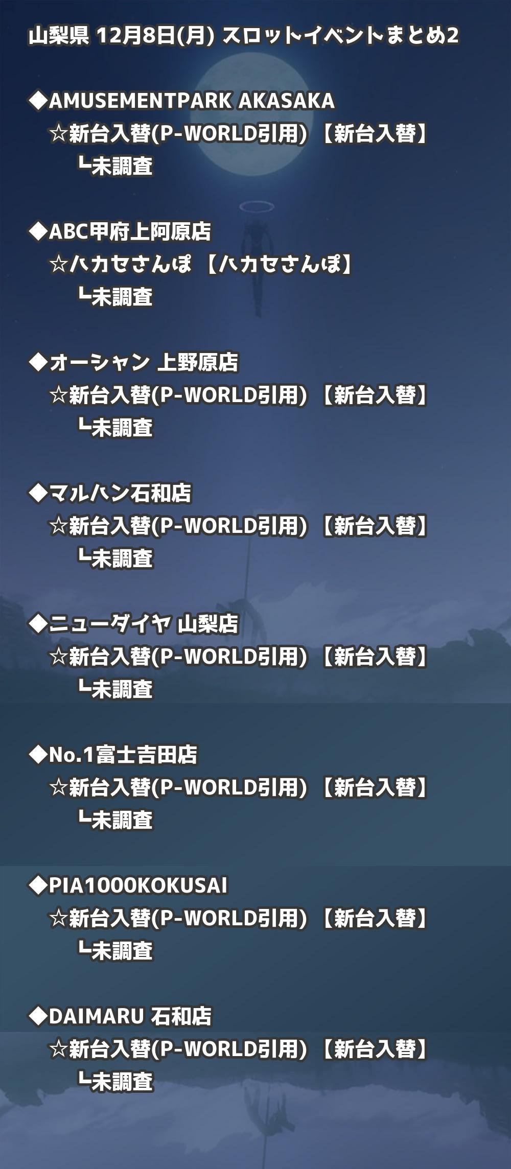 📊 山梨県 12月8日(月) 勝てるパチンコ・スロット取材店舗一覧|おすすめ順