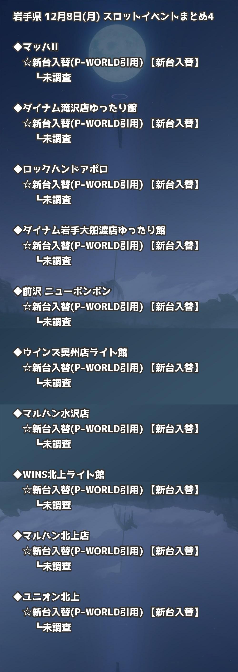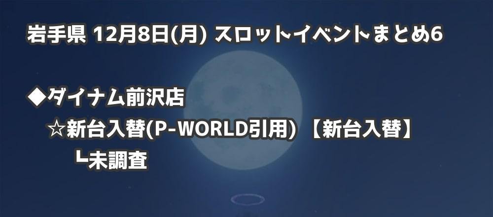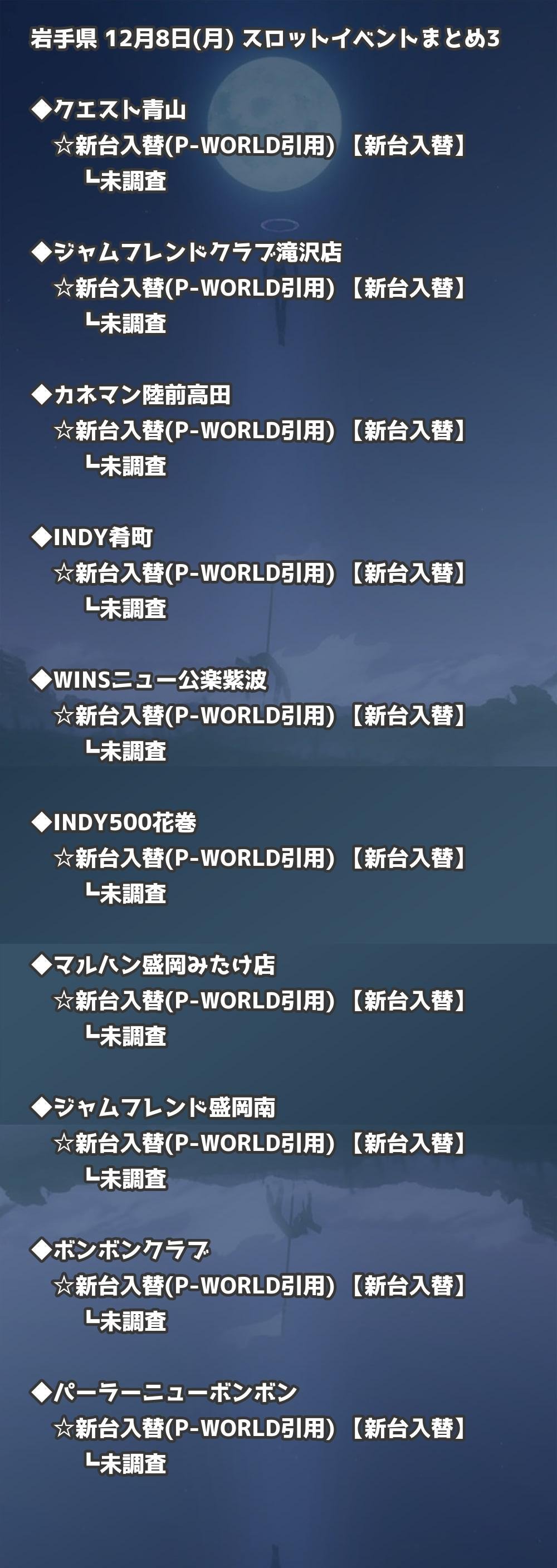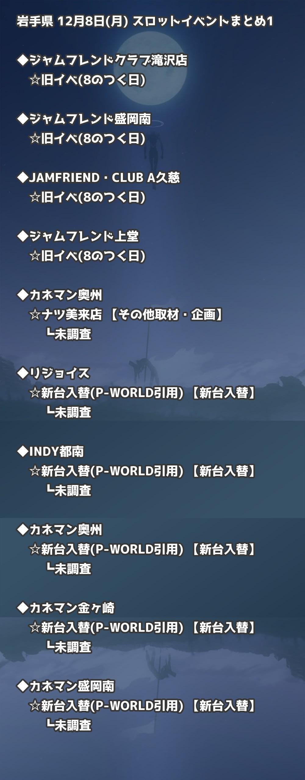 【岩手県】12月8日(月) パチンコホールイベント取材まとめ記事です。