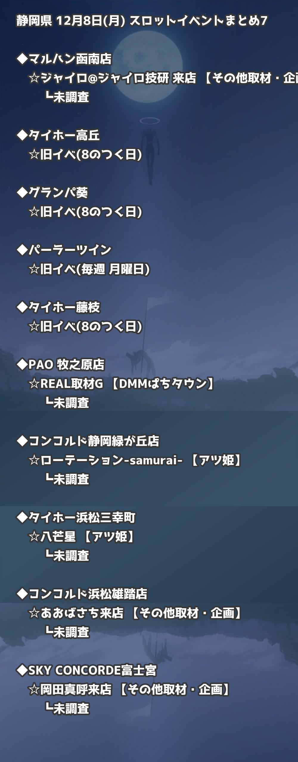 12月8日(月) 静岡県のTOP20の結果を掲載しています。タップで上位機種など詳細が見れます。