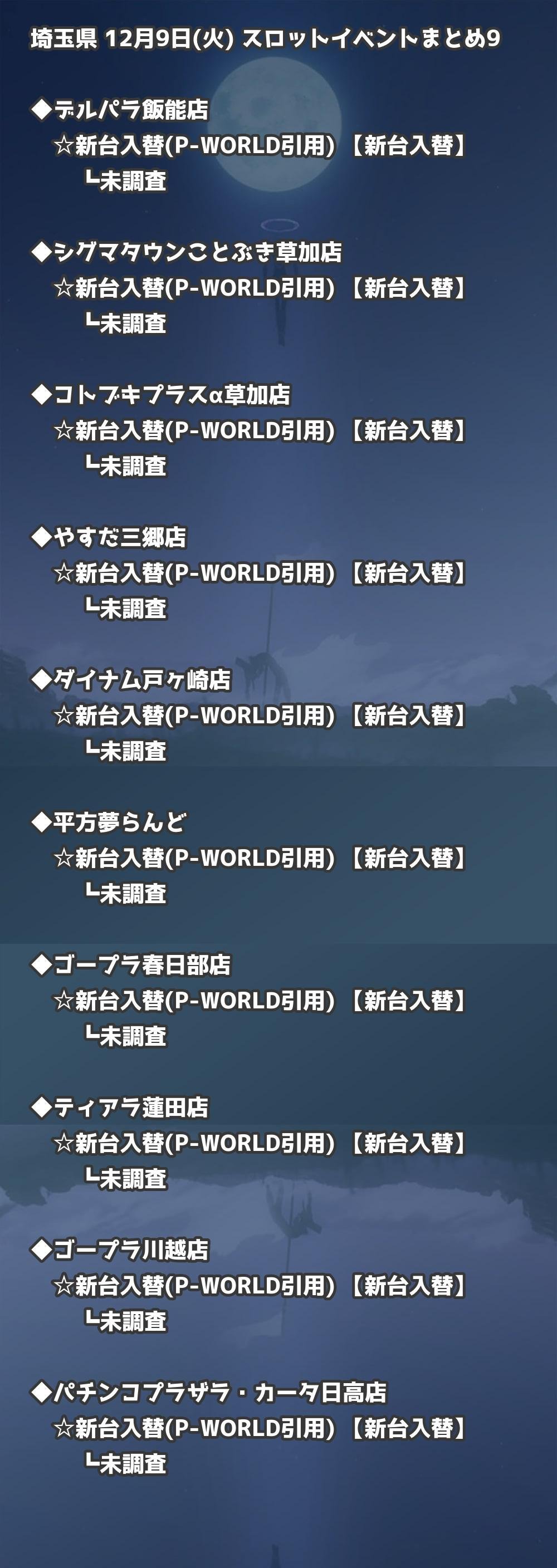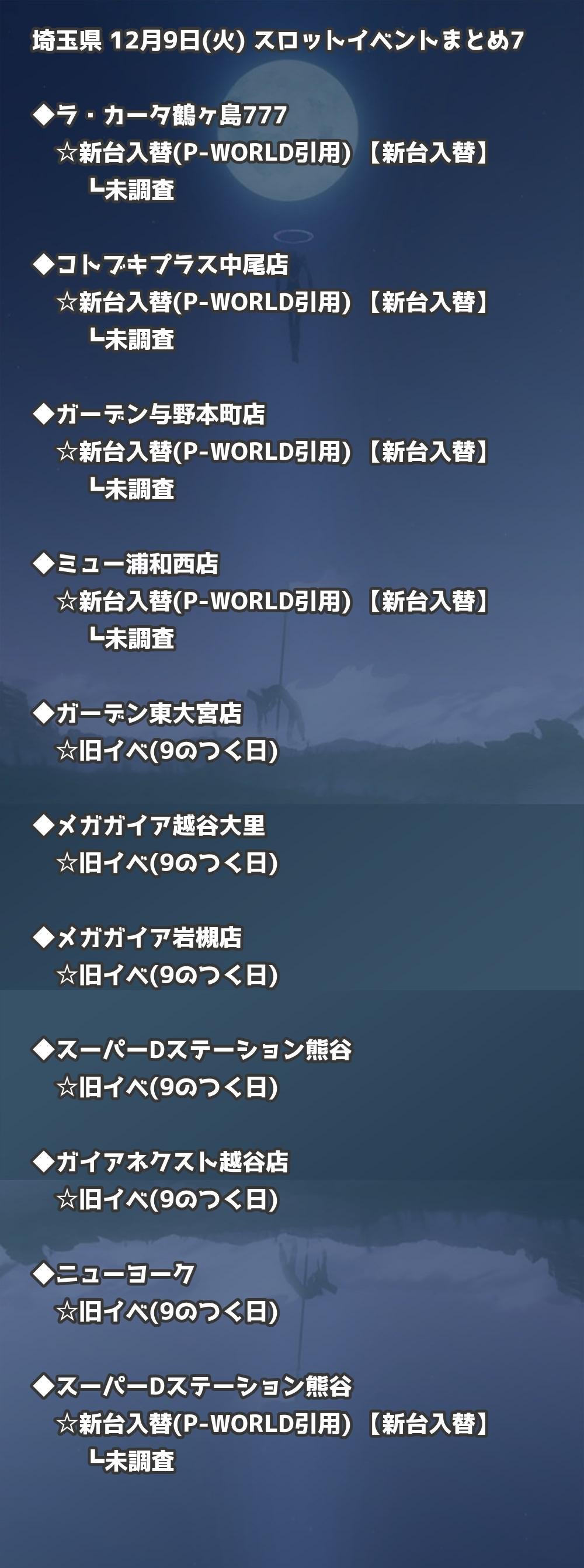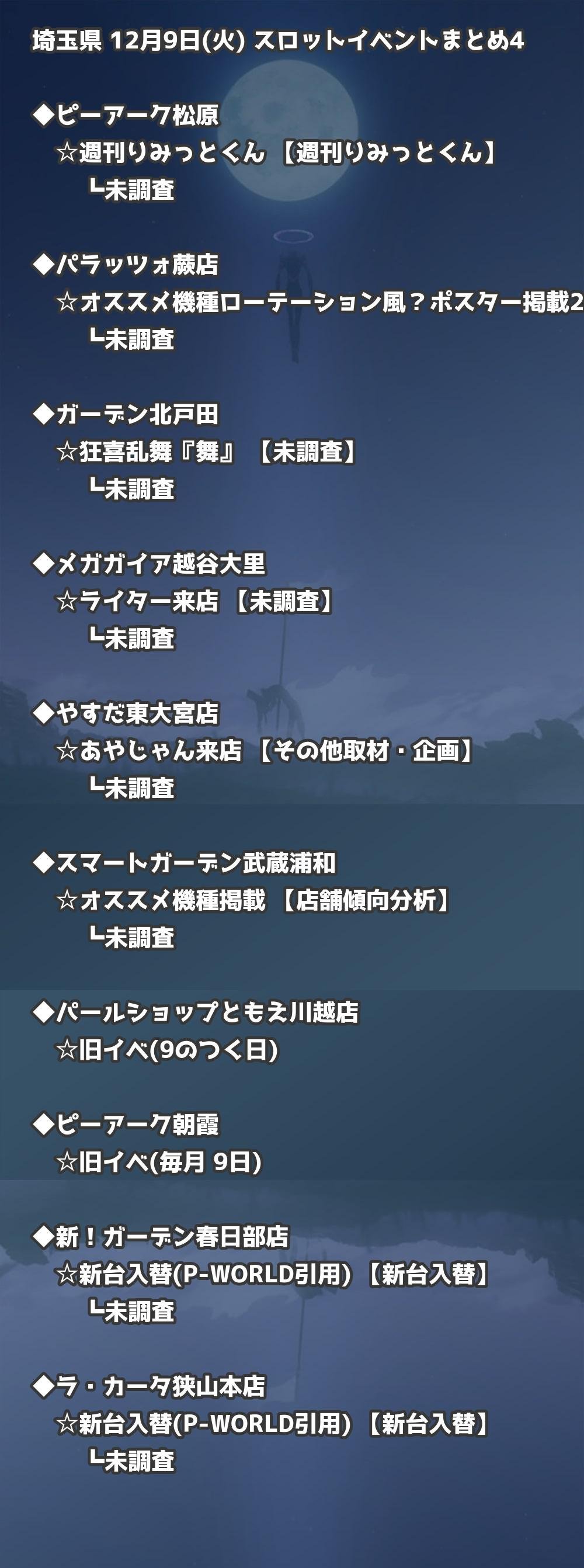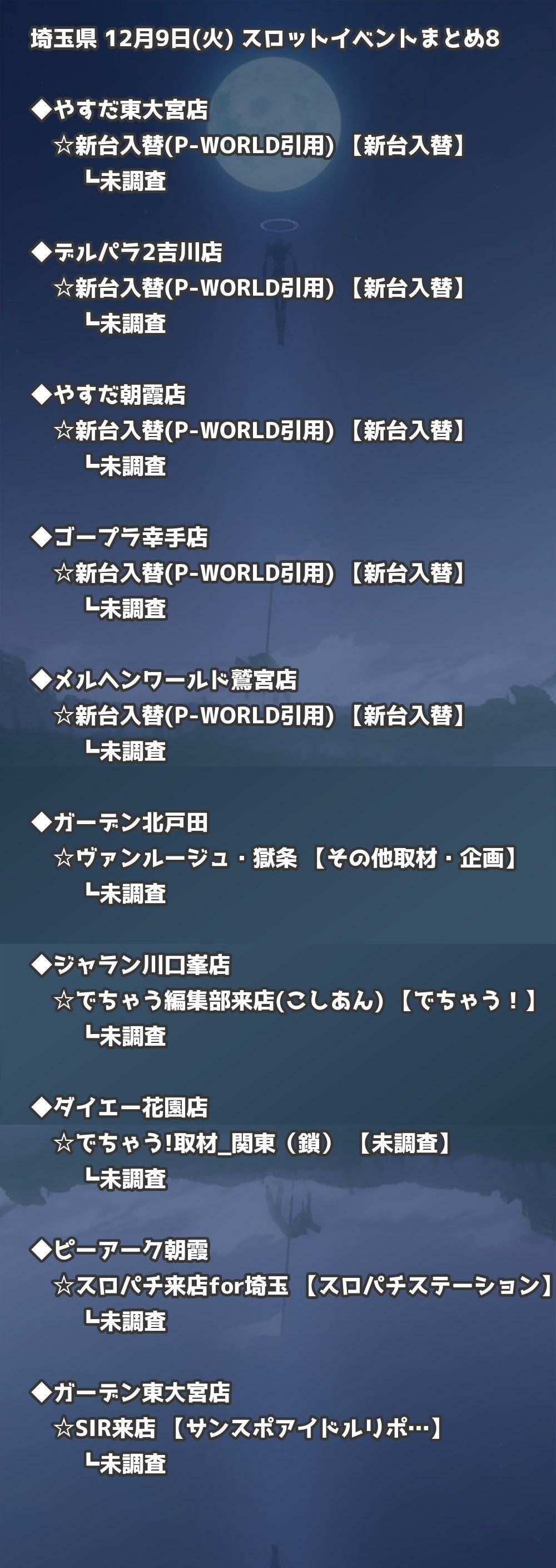 【埼玉県】12月9日(火) パチンコホールイベント取材まとめ記事です。
