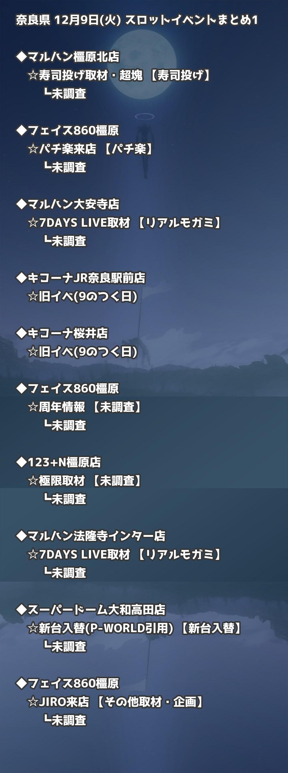 【奈良県】12月9日(火) パチンコホールイベント取材まとめ記事です。