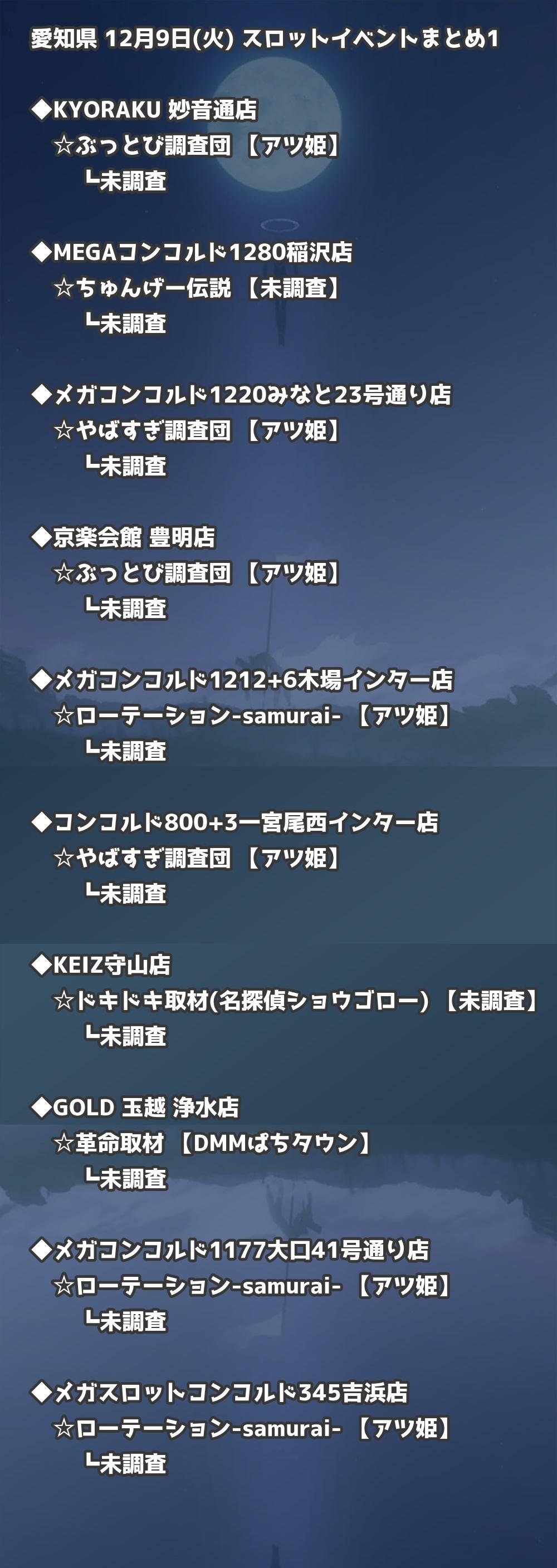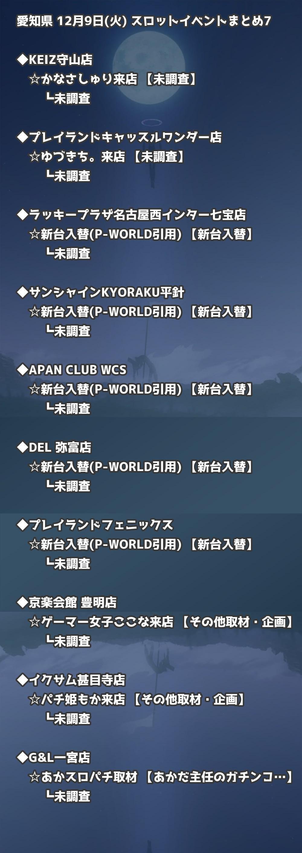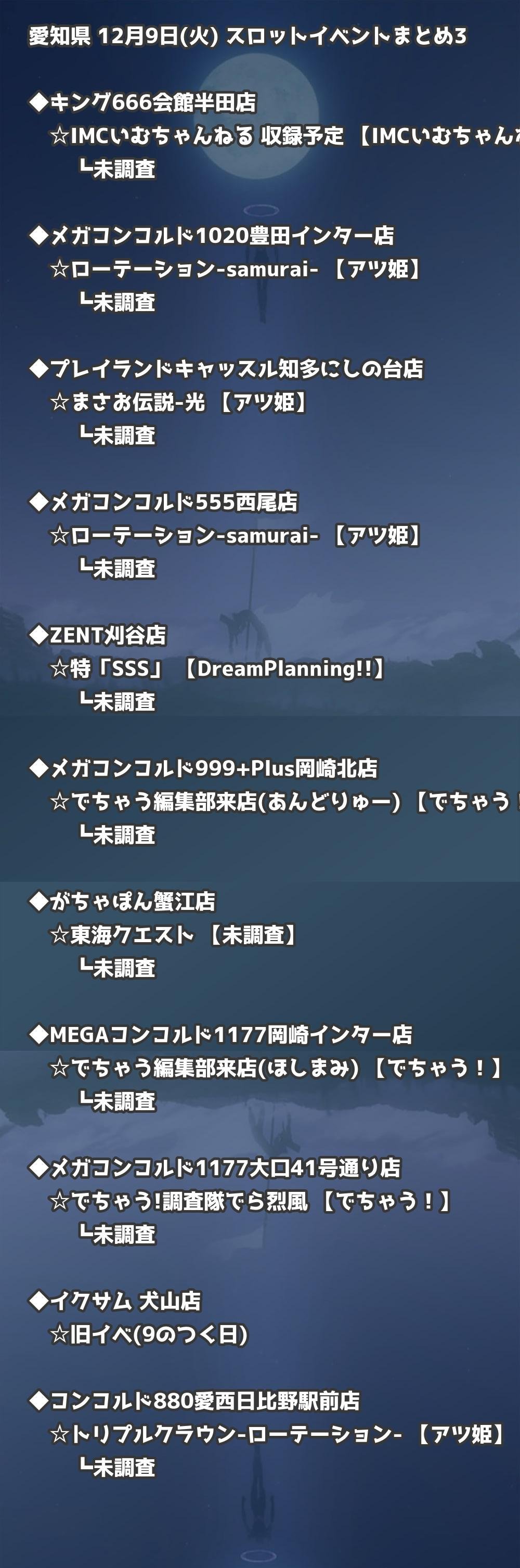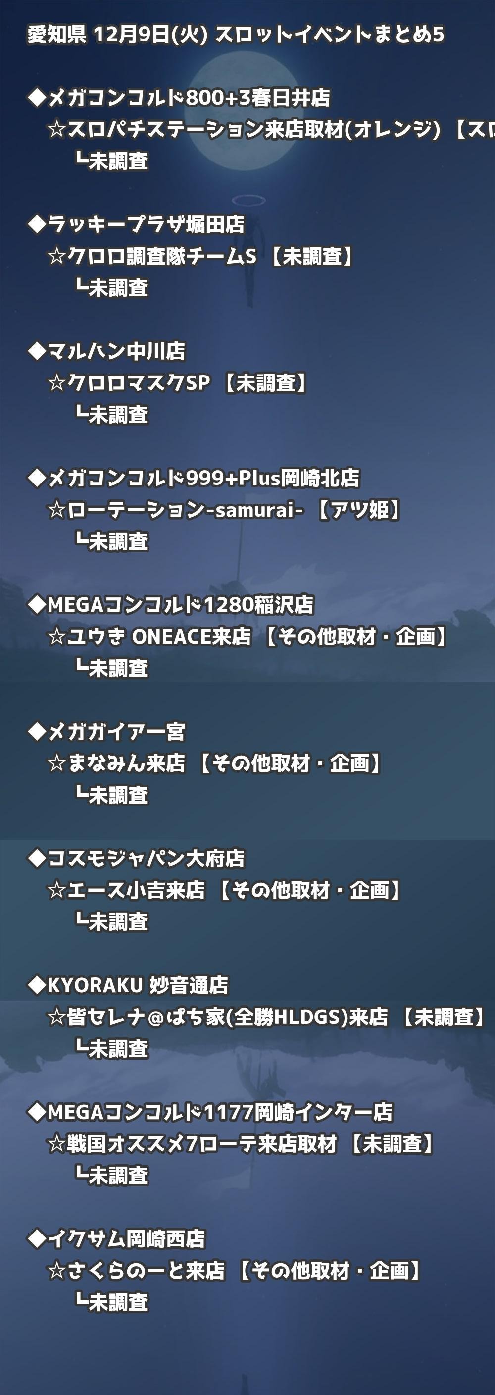 【愛知県】12月9日(火) パチンコホールイベント取材まとめ記事です。