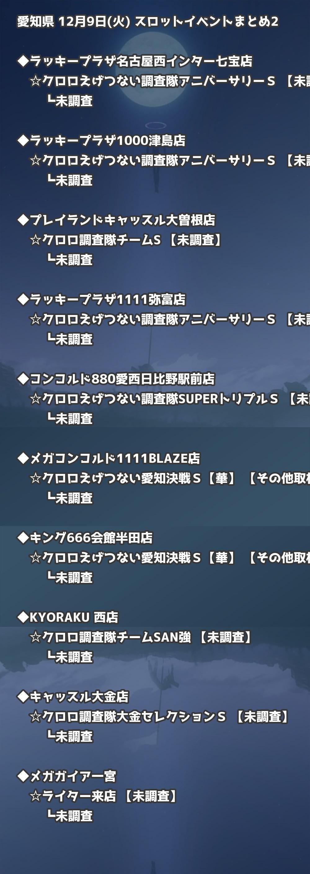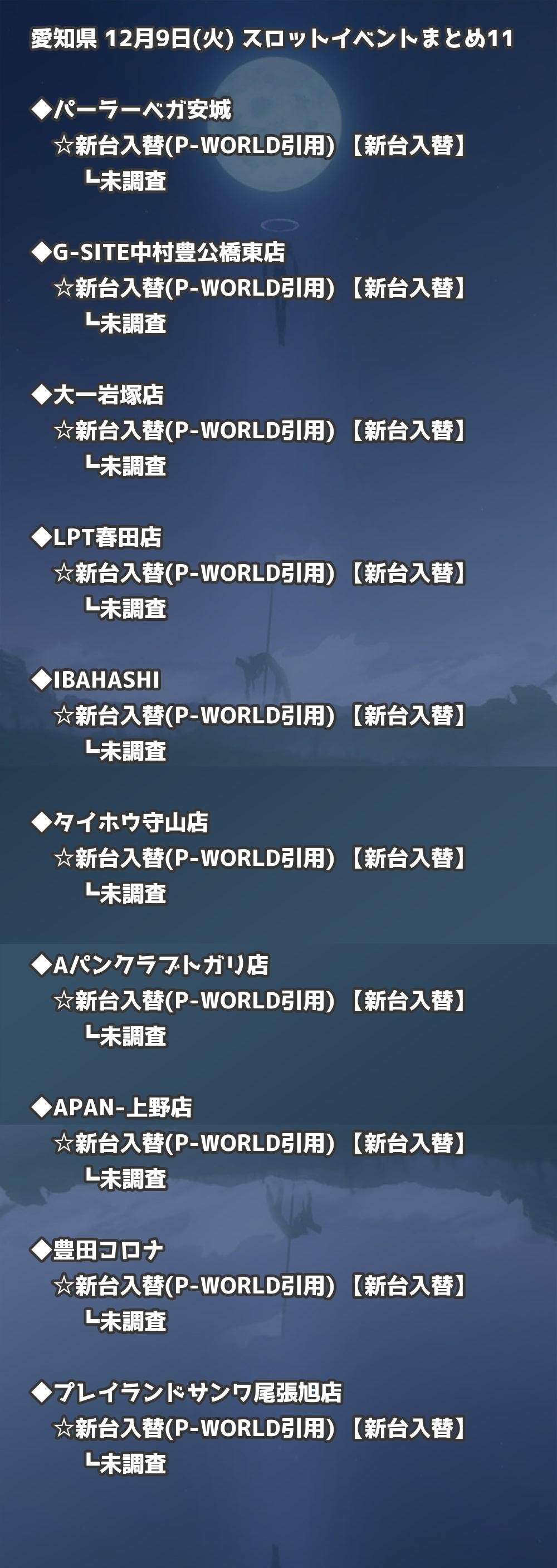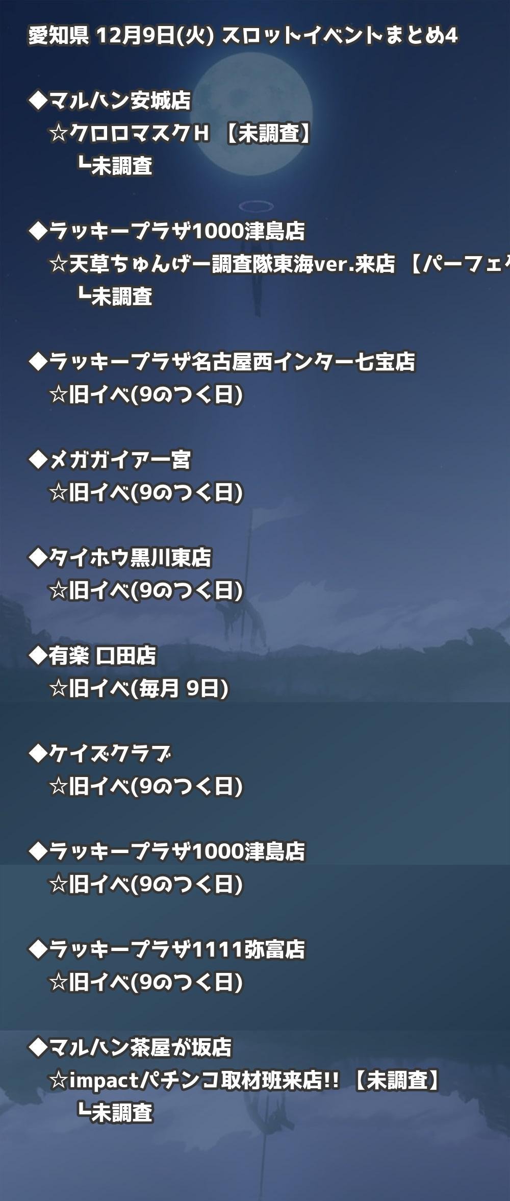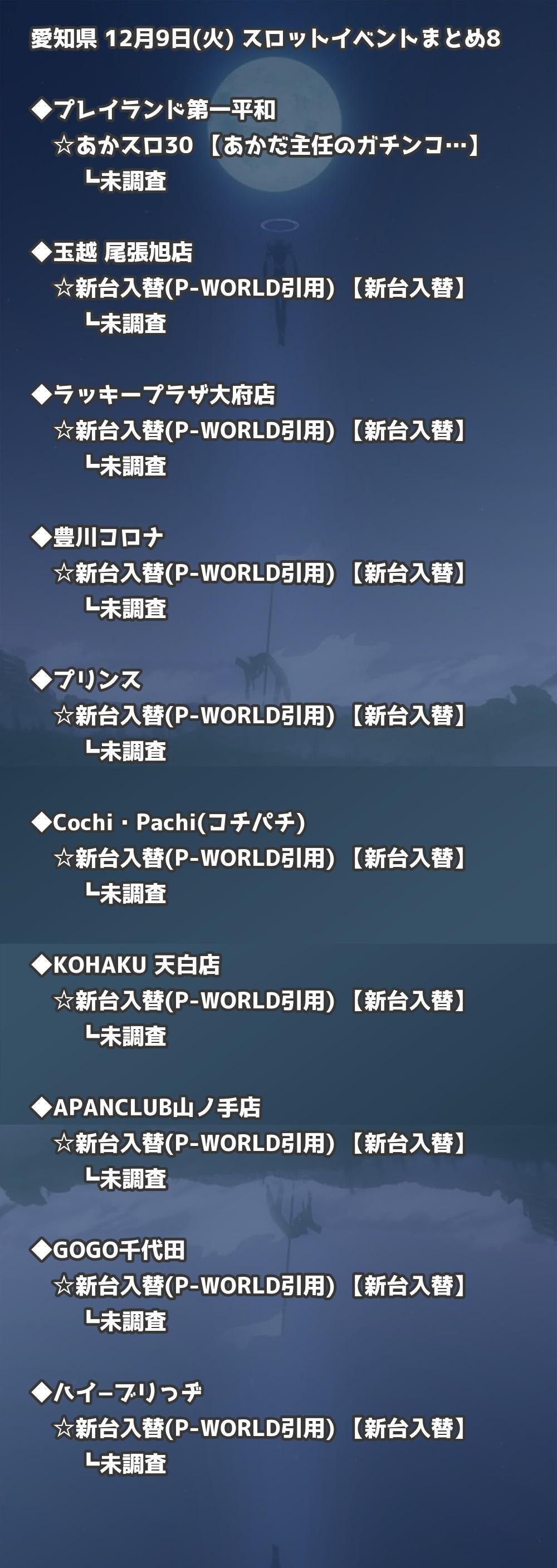 【愛知県】12月9日(火) パチンコホールイベント取材まとめ記事です。