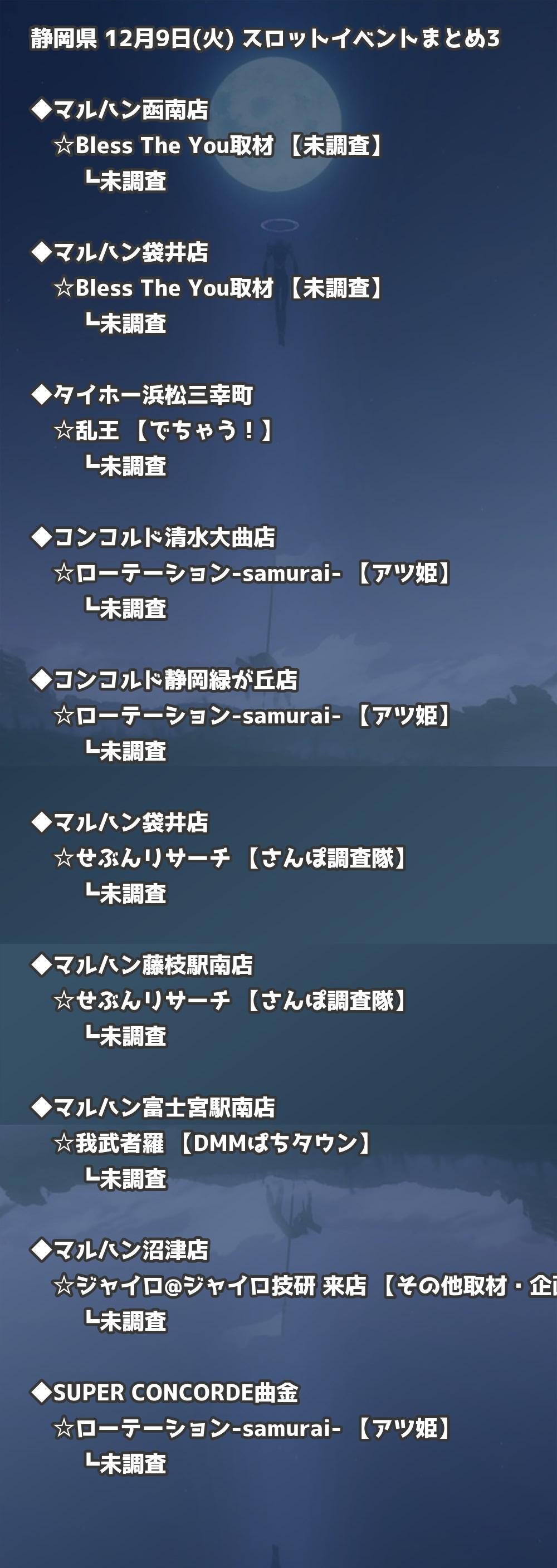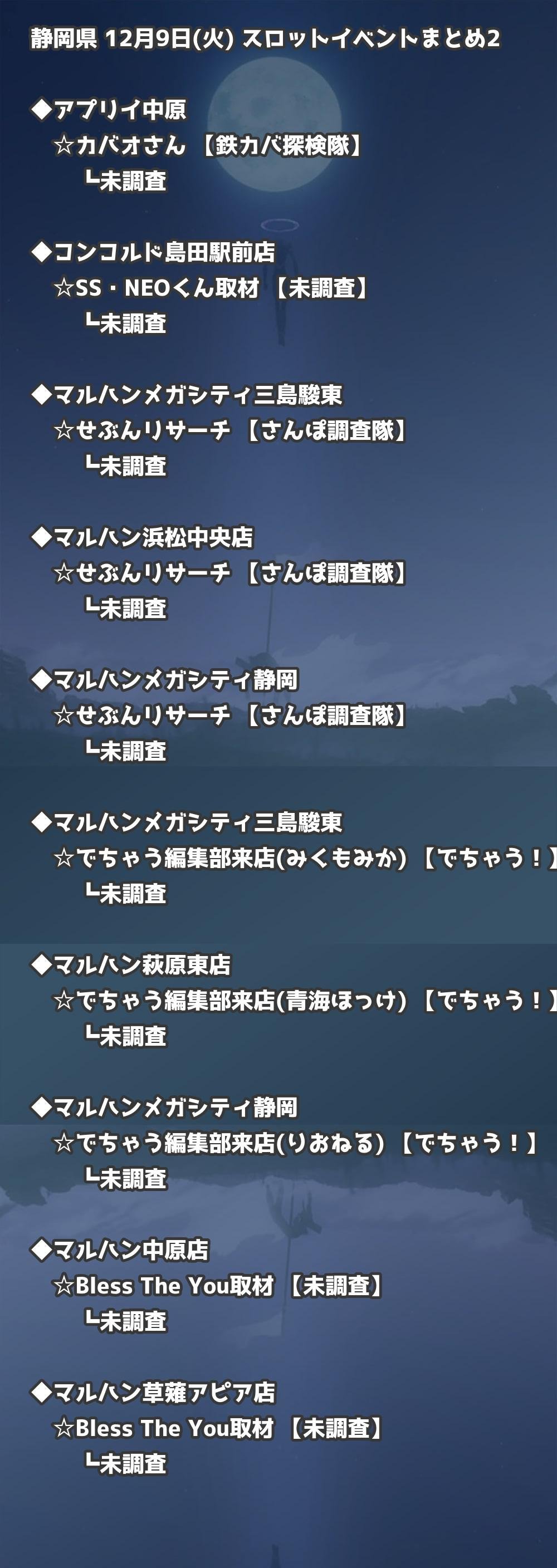📊 静岡県 12月9日(火) 勝てるパチンコ・スロット取材店舗一覧|おすすめ順