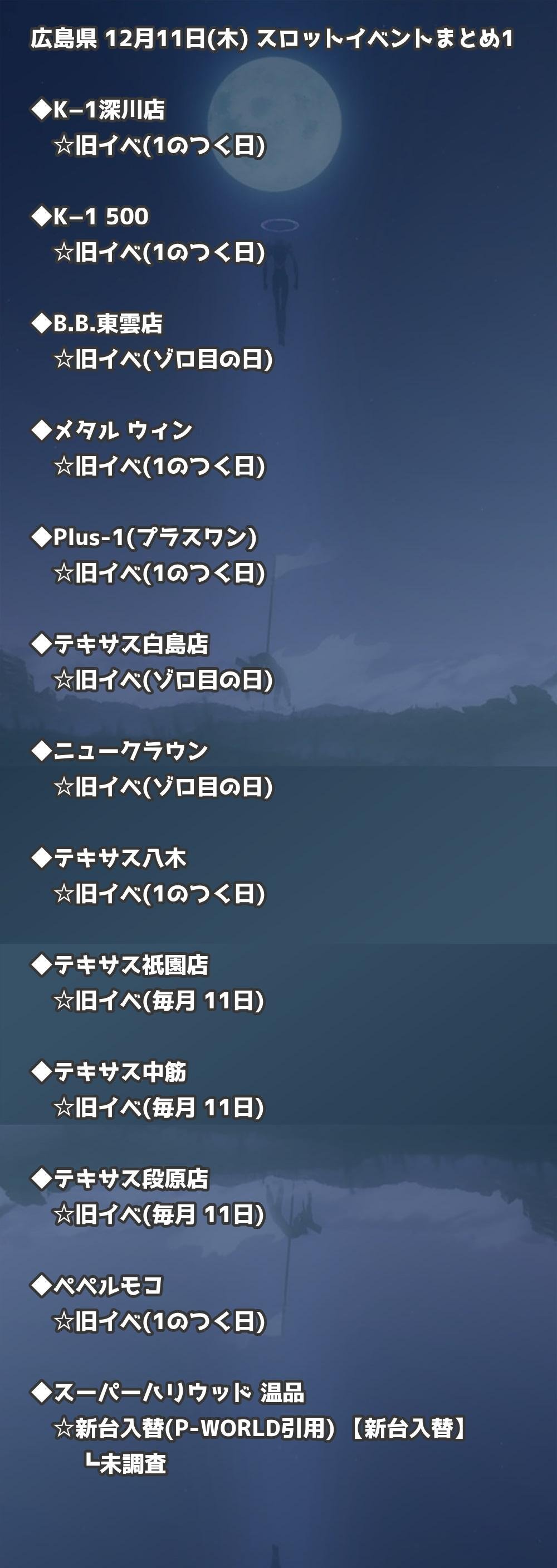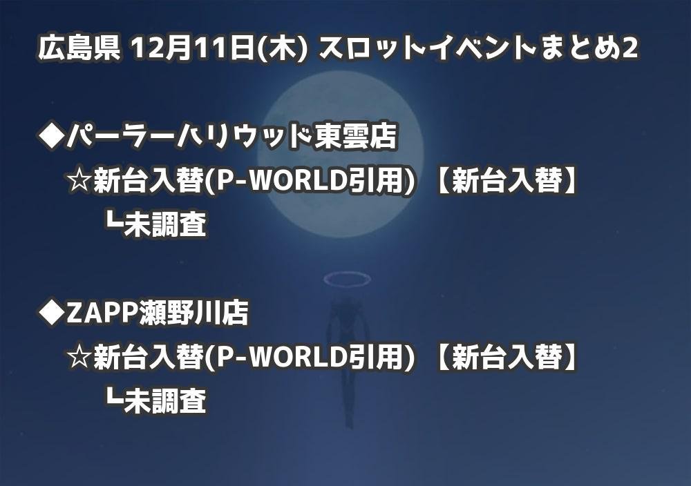【広島県】12月11日(木) パチンコホールイベント取材まとめ記事です。