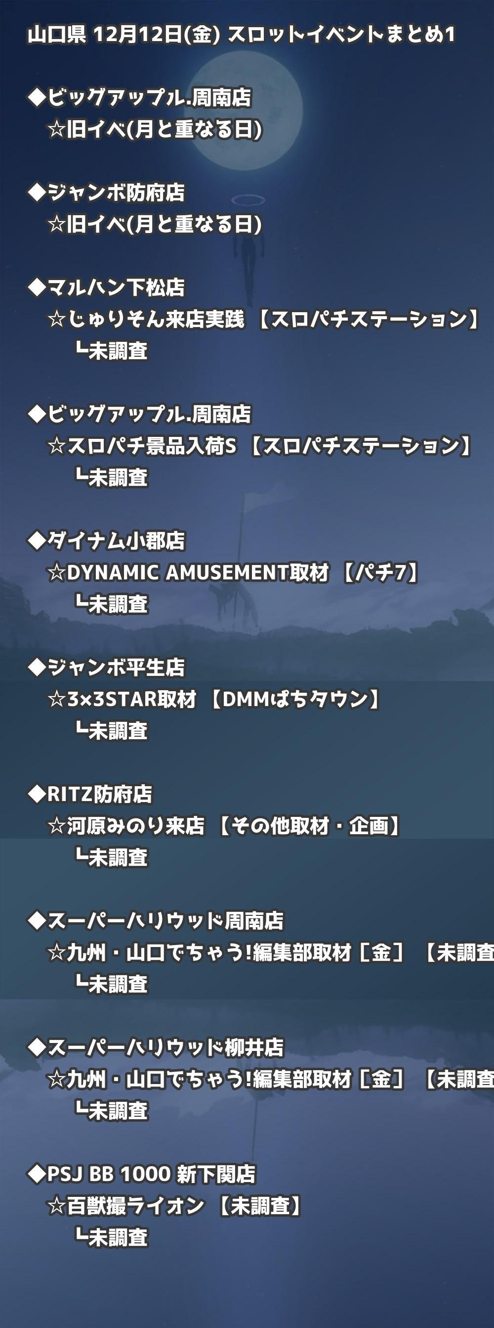 【山口県】12月12日(金) パチンコホールイベント取材まとめ記事です。