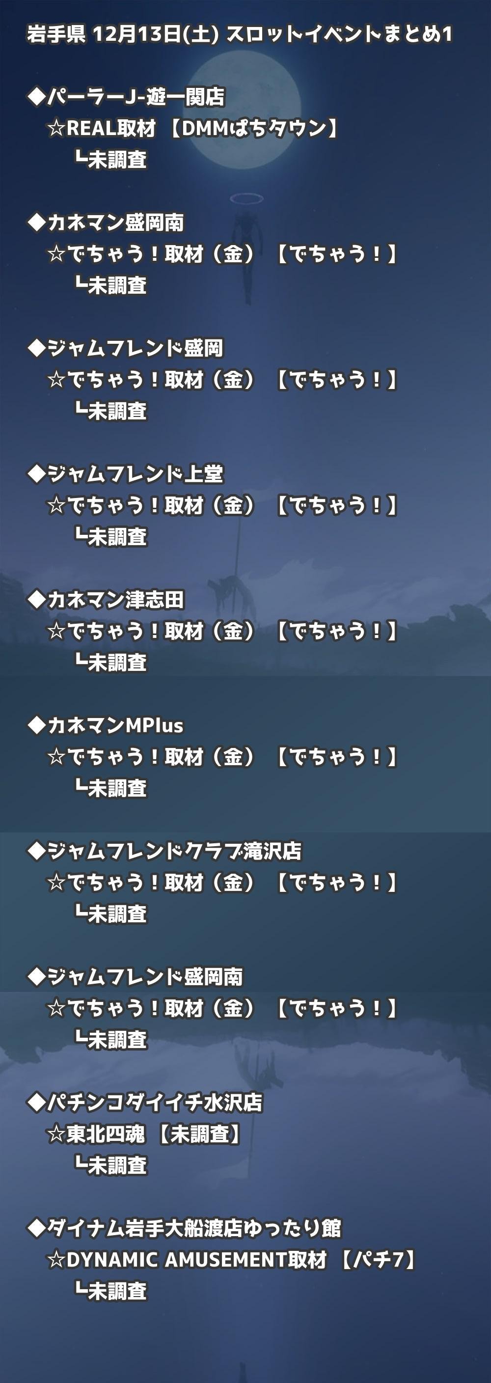 【岩手県】12月13日(土) パチンコホールイベント取材まとめ記事です。