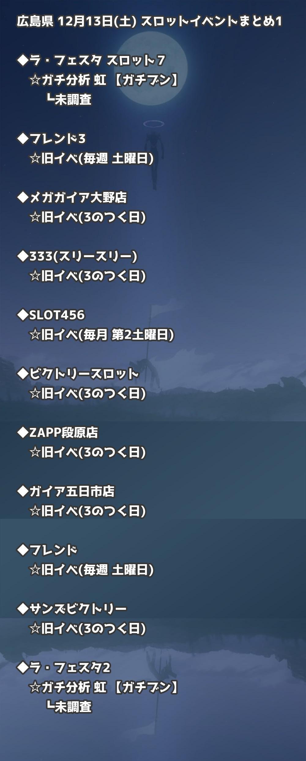 【広島県】12月13日(土) パチンコホールイベント取材まとめ記事です。